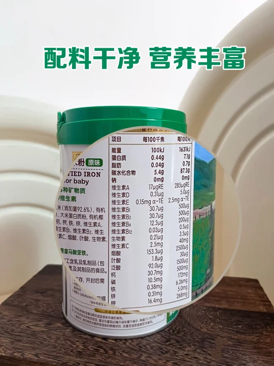 •营养好🥇:每100g含二价铁6.26mg,还加了维生素C,帮助铁吸收。配料干净,没有22大过敏原,宝宝吃着更安心。