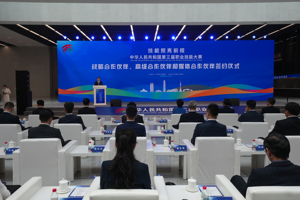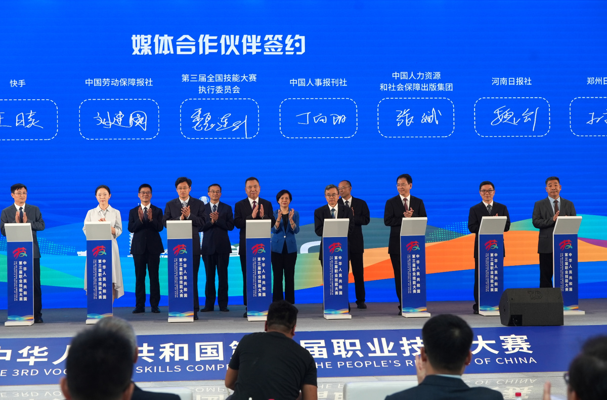 9月12日下午,中华人民共和国第三届职业技能大赛战略合作伙伴、高级合作伙伴及媒体合作伙伴签约仪式,在郑州航空港区举行。本届大赛确定了交通银行股份有限公司等7家企业为大赛战略合作伙伴,立邦投资有限公司等12家企业为大赛高级合作伙伴,河南日报社等14家媒体单位为大赛媒体合作伙伴。上述合作伙伴将在设施设备、技术支持、赛事保障、宣传推广等方面为大赛提供支持和服务。