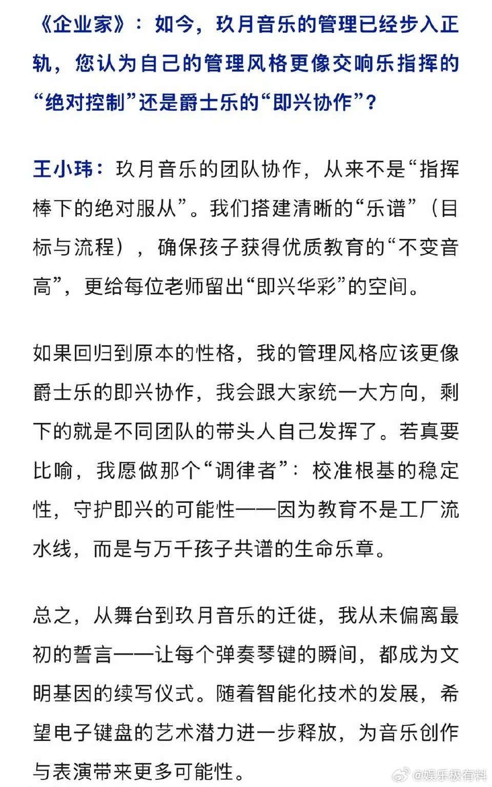 玖月奇迹王小玮3500字采访信息量 发现个宝藏!王小玮这篇3500字采访信息量绝了!从电子管风琴的初遇到现在做玖月音乐,连文化表达怎么不脱离市场都有具体想法,每部分都有料,读完对她的认知直接刷新!