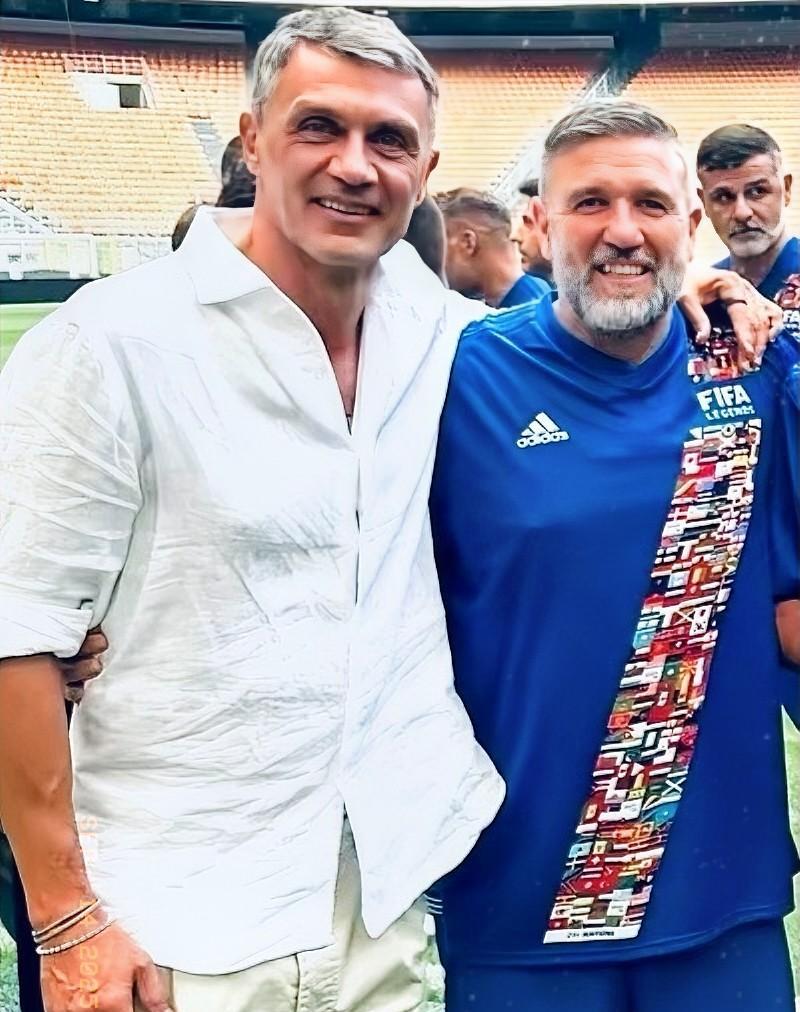马尔蒂尼身旁的这个男人,看起来比马队还要苍老,其实他比马尔蒂尼要年轻好几岁,还能认出他是谁么? 没错,这个胡子已经花白的前意甲名宿就是罗马队昔日的边路飞翼坎德拉。二十多年前的红狼军团里,卡福和坎德拉的两翼齐飞名场面肯定让意甲老球迷怀念不已,作为罗马当年拿到联赛冠军的主力功臣,我觉得坎德拉的职业生涯有点被低估了,也算是生不逢时吧,那个时期在法国国家队的左边路,利扎拉祖的位置是不可动摇的,所以坎德拉的法国国家队生涯有点悲催,也有点可惜。