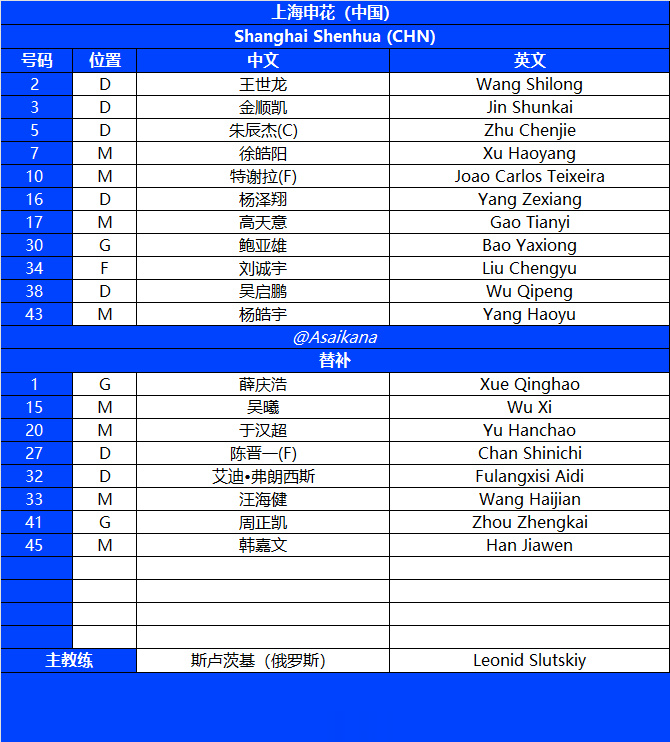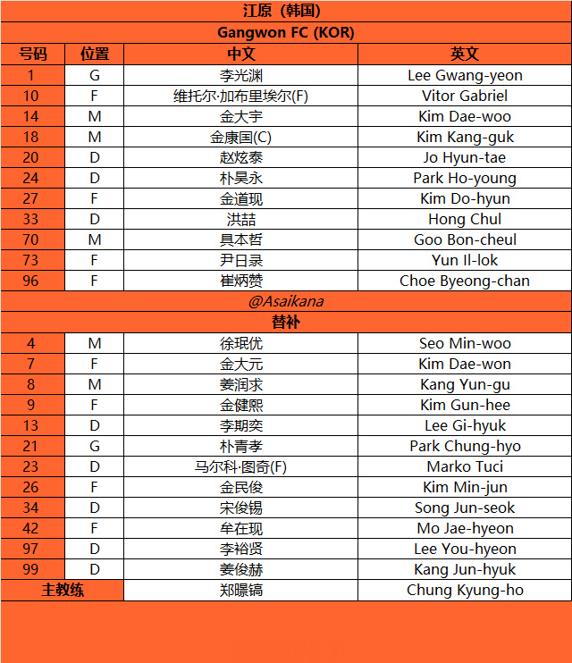 虎扑09月16日讯北京时间今天18:00,新赛季亚冠精英联赛第一轮,上海申花客场挑战江原FC,赛前双方公布了首发名单: