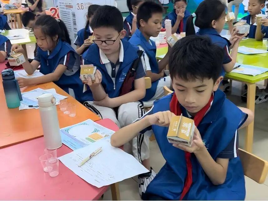 在探究环节,科普老师创新性地设计了“标签解码与感官实验室”互动项目。同学们通过“蒙眼盲测-数据解读-生产线参观”三维体验模式,将饮品的风味特征、营养矩阵与智能生产工艺进行跨维度关联。这种从感官认知到科学认知的进阶式学习,帮助学生构建从口感到数据的科学决策模型。