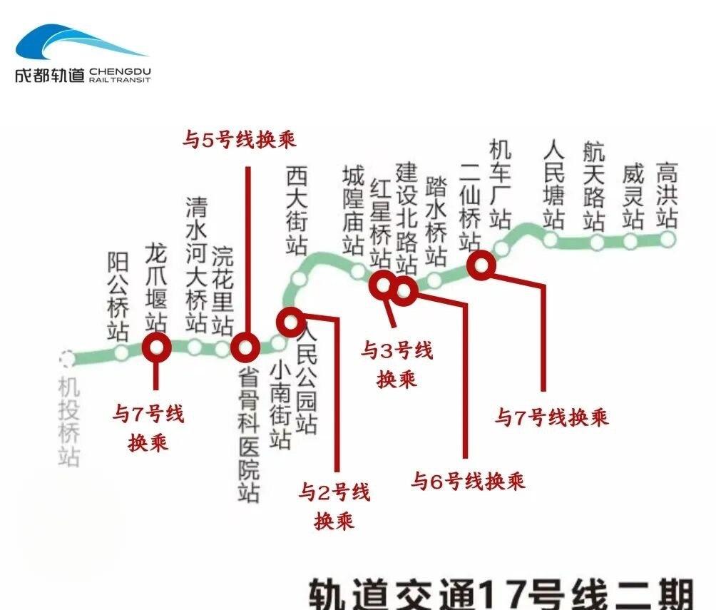 成都地铁17号线二期是一期工程的延伸线,起于机投桥站,止于高洪站。贯穿中心城区西