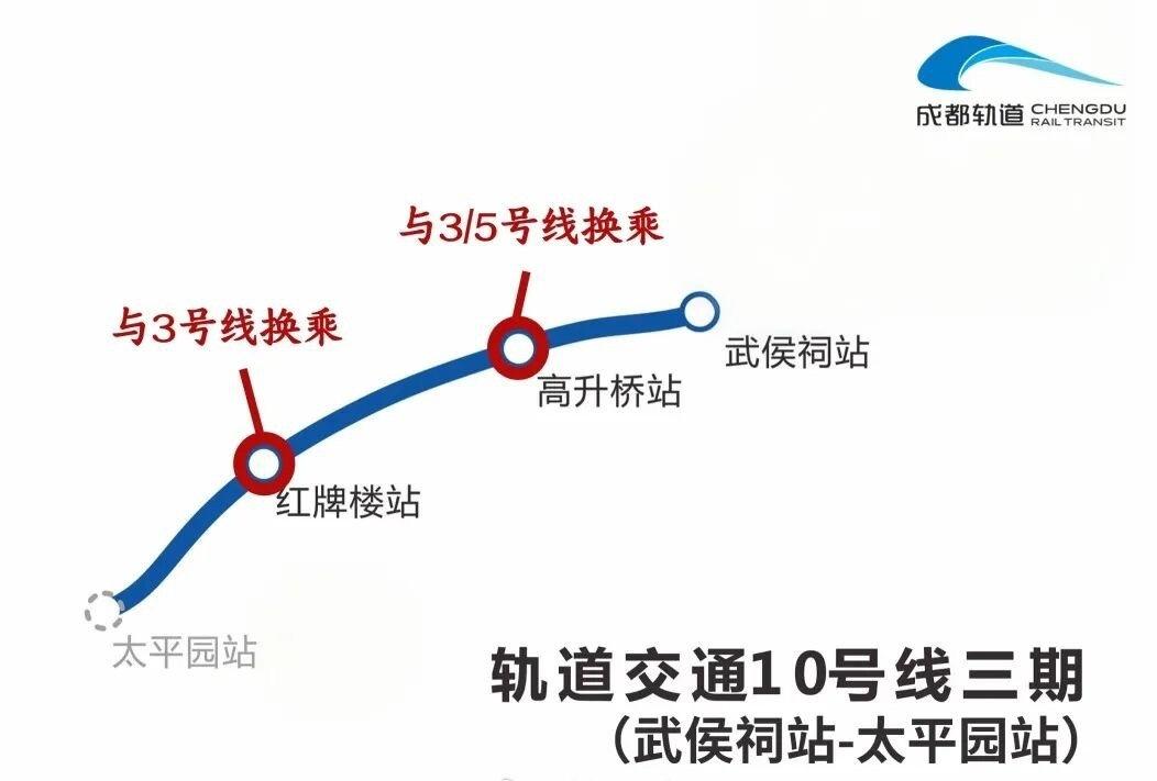 成都地铁17号线二期是一期工程的延伸线,起于机投桥站,止于高洪站。贯穿中心城区西南至东北方向,全长24.76公里。线路串联起城市多个客流密集区,18座车站中,有6个站为换乘站,与5条线路实现便捷换乘。 10号线三期是一二期工程的延伸线,起于人民公园站,止于太平园站,全长5.87公里。为中心城区居民与机场间旅客提供便捷的轨道交通服务。此次10号线三期开通运营范围为武侯祠站-太平园站,剩余2个车站(文翁石室站、人民公园站)待具备开通条件后尽早开通。