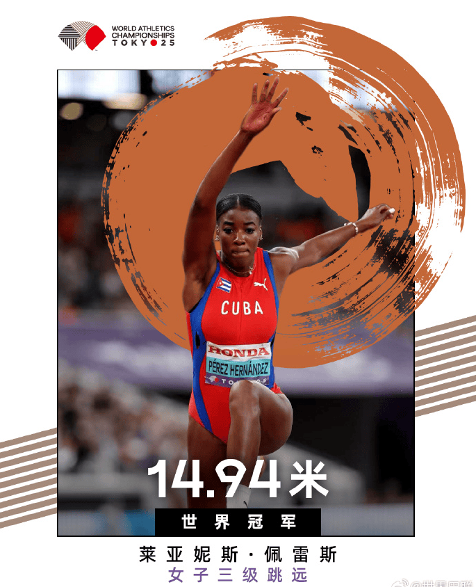 虎扑09月18日讯世锦赛女子三级跳远决赛,古巴选手莱亚妮斯-佩雷斯,两次跳出14米94,刷新本赛季世界最好成绩,首夺室外世锦赛金牌。