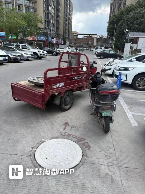 记者随即将该情况反映至鲤城区江南街道明光社区,社区第一时间联系厂家定制符合尺寸和型号的新窨井盖。为保障通行安全,社区已在破损窨井周边设置了三个醒目的警示锥,提醒车辆和行人绕行。
