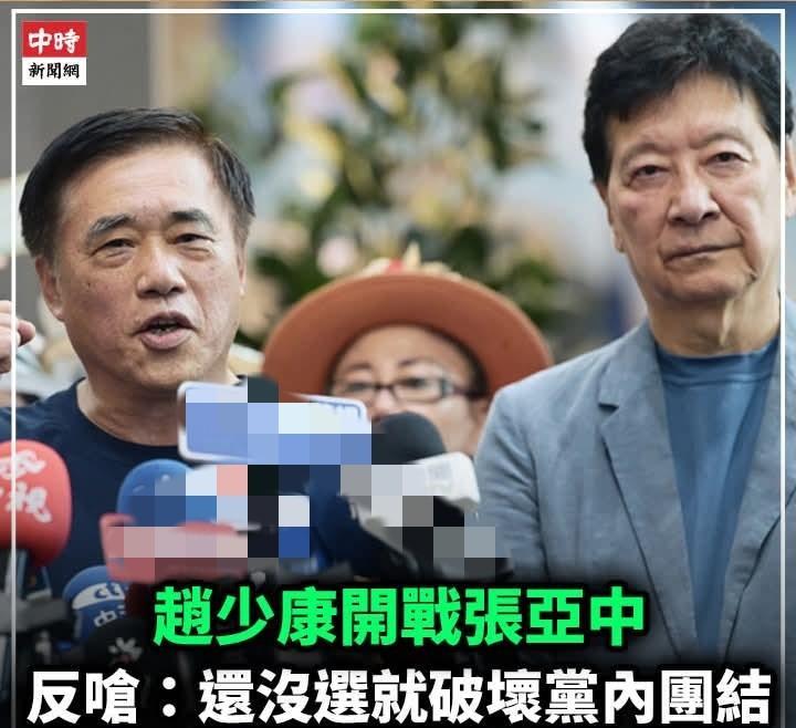 赵少康不演了!公然号召抵制张亚中!张亚中开撕! 不知道是不是郝龙斌是扶不起的阿斗,还是赵少康也被骂到乱了节奏!在昨天晚上《少康战情室》的节目上赵少康竟公然呼吁国民党党员抵制张亚中,说张亚中撕裂国民党,破坏团结!张亚中听闻怒骂赵少康朱立伦密室交易,沆瀣一气!提前开撕了。赵少康你又不选,激动什么?是郝龙斌太弱你急了? 台媒分析赵少康开撕张亚中,其实是要打击另一个热门人选郑丽文,不好直接撕郑丽文,因为郑丽文网络人气太高。