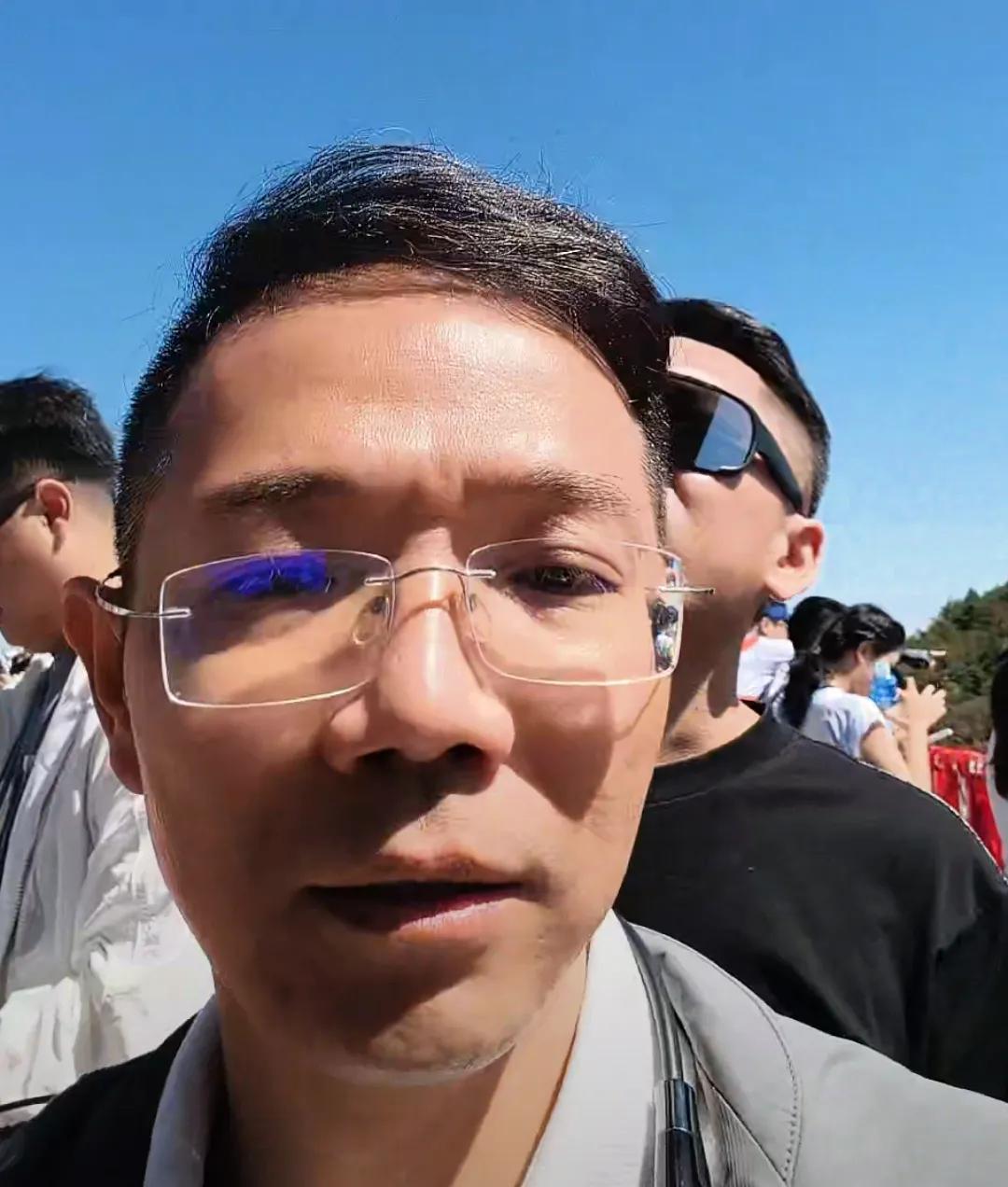 李律今天一早上登上了泰山! 先是坐的索道, 李律说: 有理必胜! 是泰山,给了我