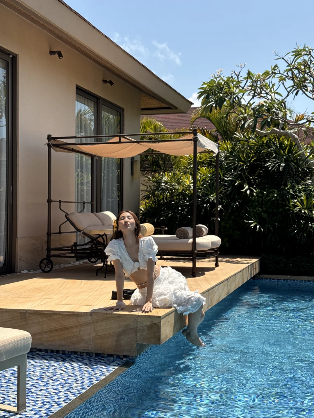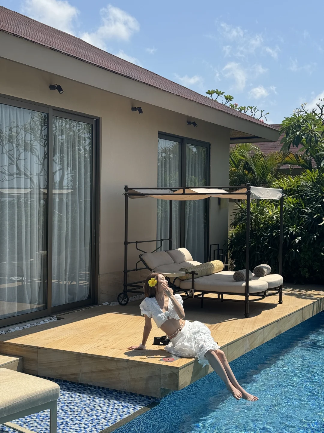 p2-p4:吃饭早餐🥣出太阳了🌞抓紧在泳池边拍了两张(阳光☀️好充足睁不开眼)但是很喜欢光合作用的感觉