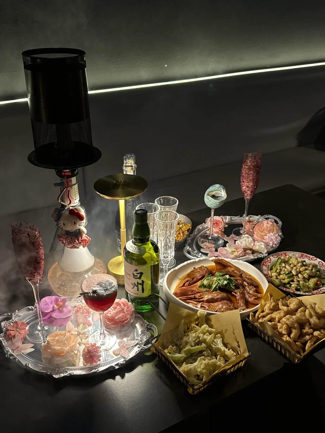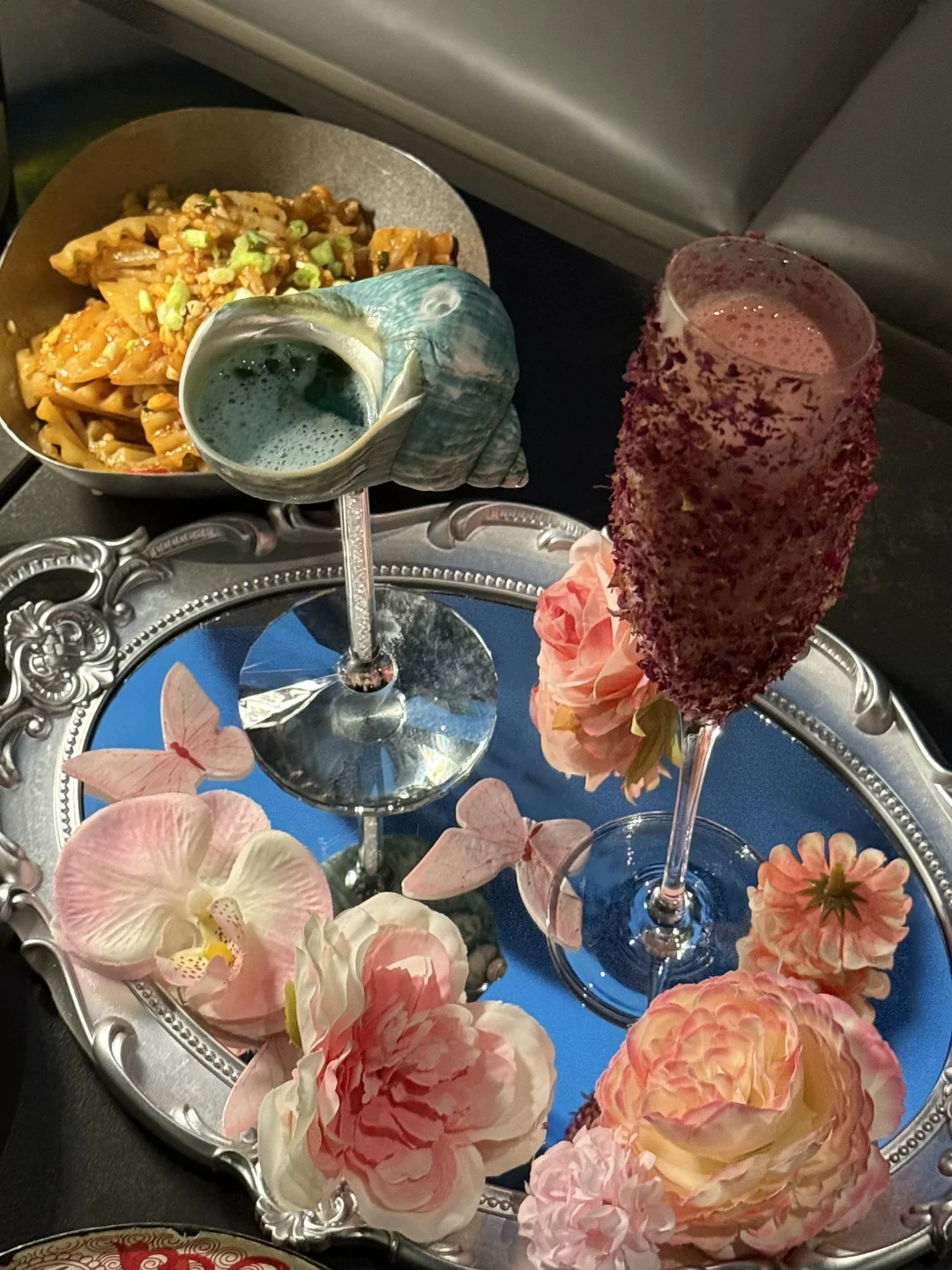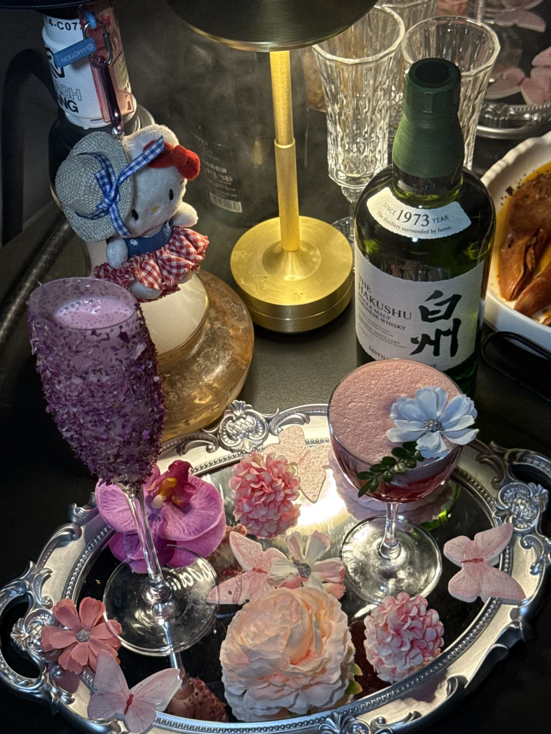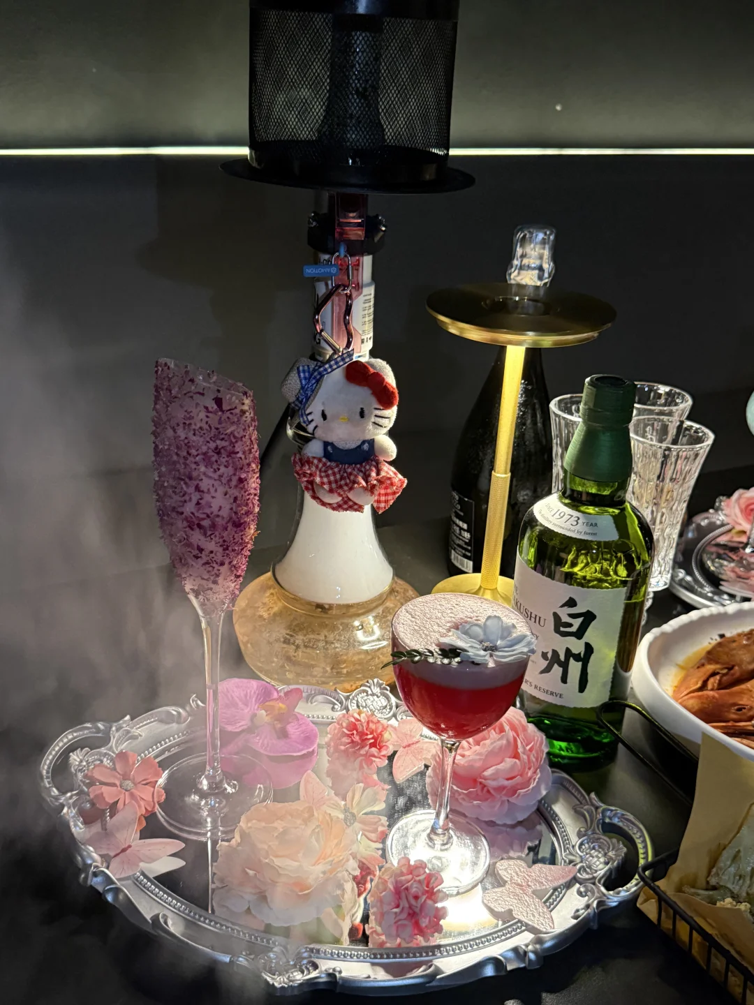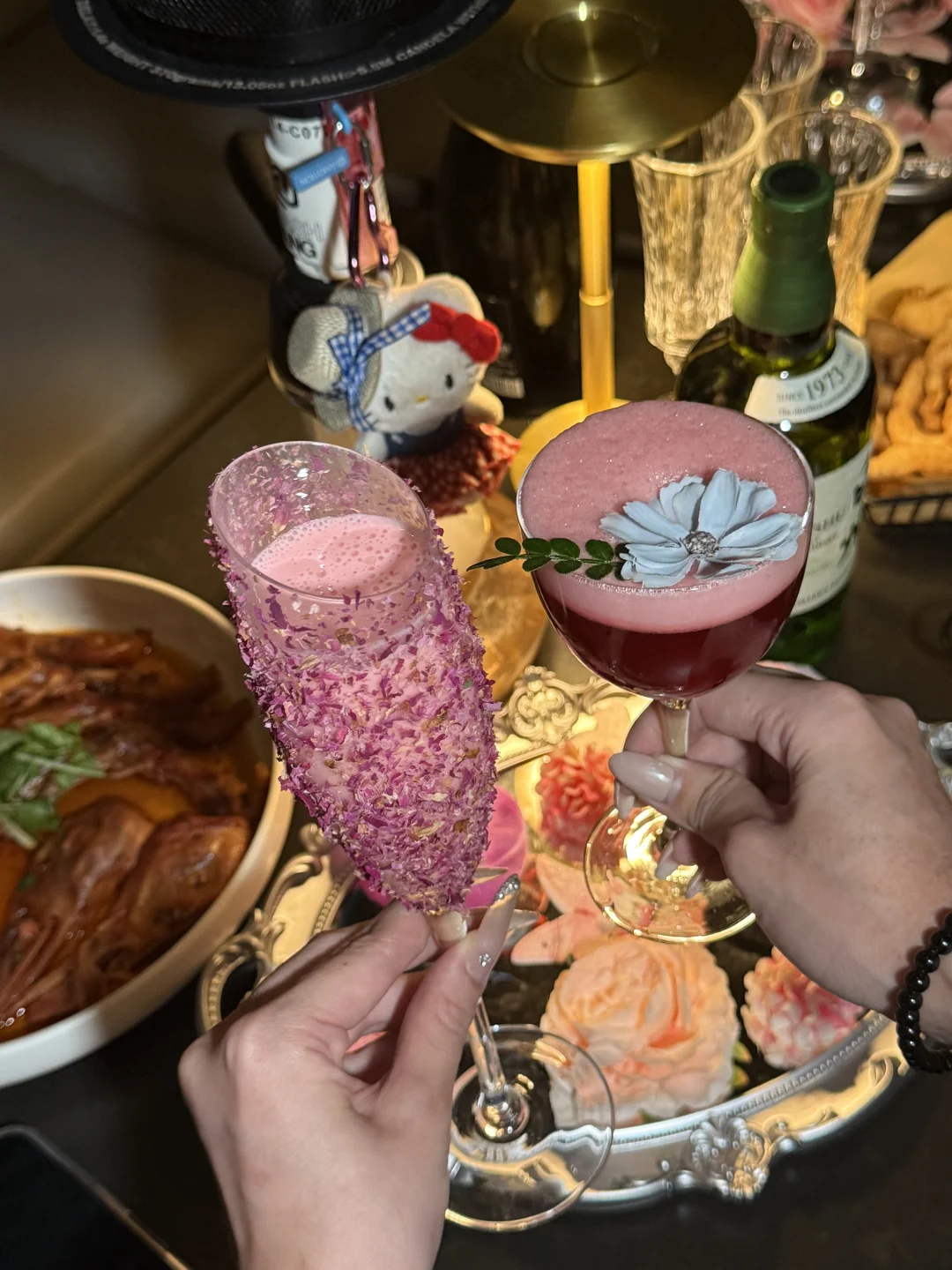 工作太忙好久没和姐妹微醺咯🥂 这次正好接她下班💼 约着一起拍照小酌~ 店里还挺好拍的 比较喜欢蝴蝶🦋的景 总体偏暗黑美式风 店里的调酒意外的好少女心~ 粉色kt和花瓣摆盘🌸没有女生可以拒绝!!