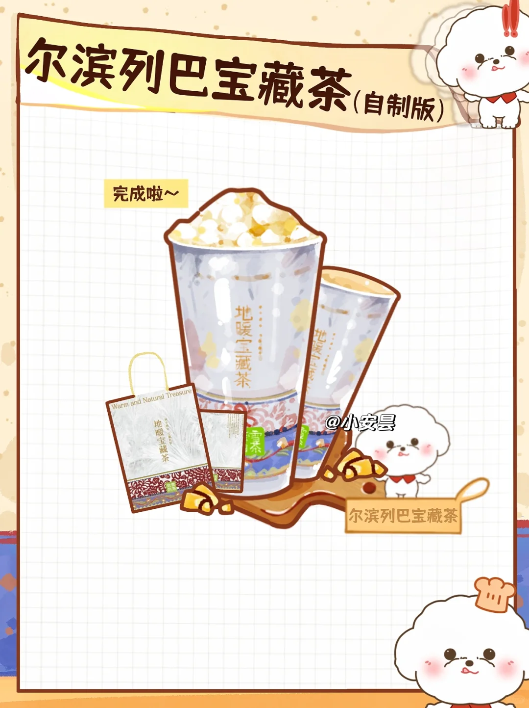 3⃣继续加入悦鲜活牛奶以及厚乳,尔滨列巴宝藏茶就完成啦!!!!!