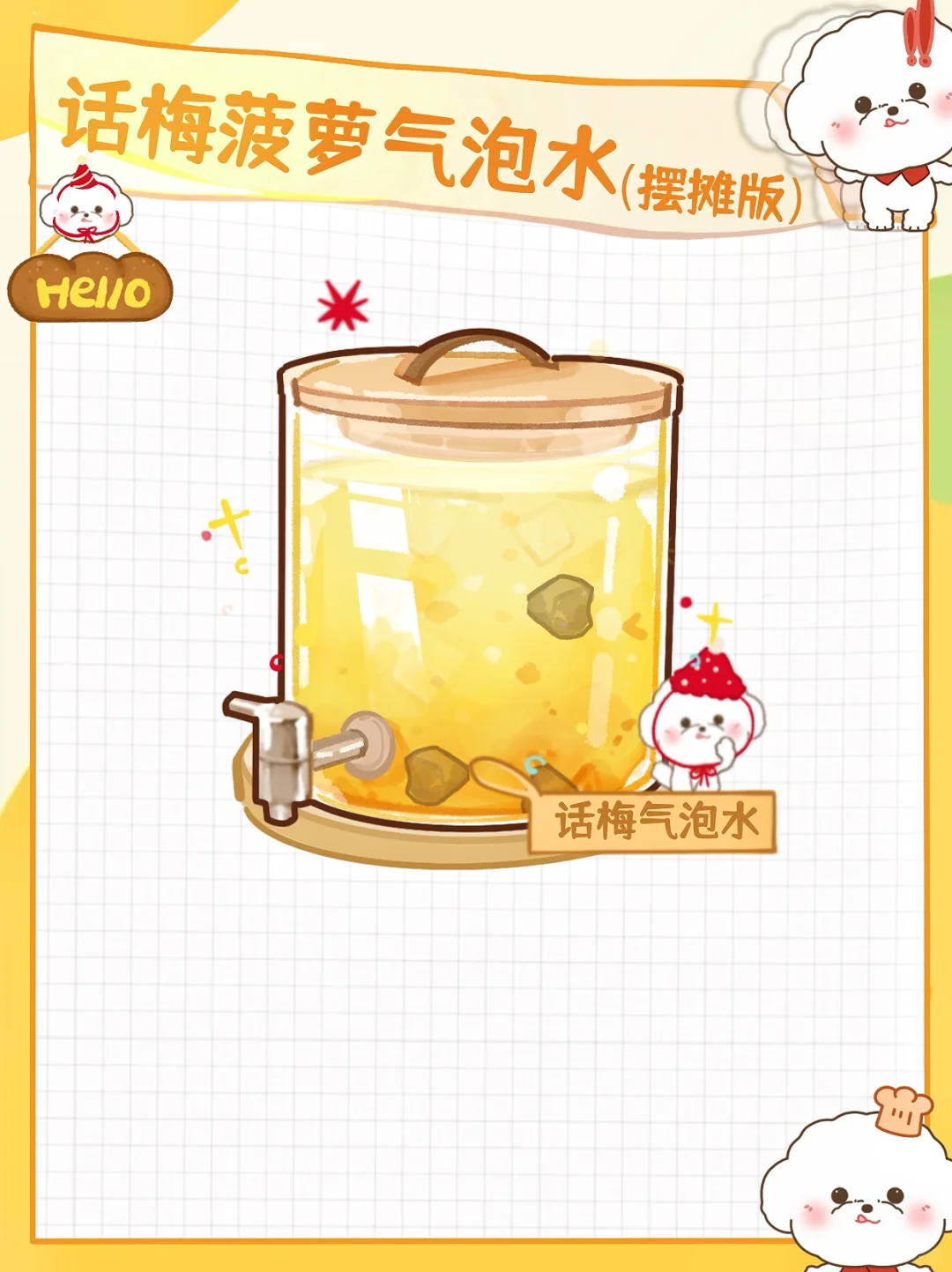🍍话梅菠萝气泡水,春日摆摊顶流 家人们,摆摊季又双叒来啦!今年准备在春日街头搞点大事情——话梅菠萝气泡水,这搭配真的绝绝子,好喝到跺脚! 话梅菠萝气泡水(摆摊版) 🥣材料准备 菠萝块➕话梅➕气泡水➕50ml热水➕冰块🧊 ✨制作步骤 1️⃣ 首先将话梅放热水里泡一会儿,泡出咸味 尔继续加入冰块杯子里加入菠萝块,用力压出汁 3️⃣再加入话梅水,再加入气泡水,话梅菠萝气泡水就完成啦! 赶紧动手试试,一起在街头贩卖快乐吧!👋