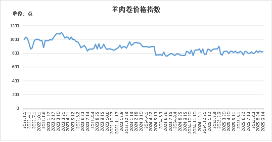9月14日,怀仁羊肉卷价格指数报823.28点,较上期上涨0.46%,价格报47.75元/公斤,较上期上涨0.22元/公斤。