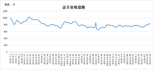 9月14日,怀仁活羊价格指数报843.09点,较上期上涨2.12%,价格报12.10元/斤,较上期上涨0.25元/斤。