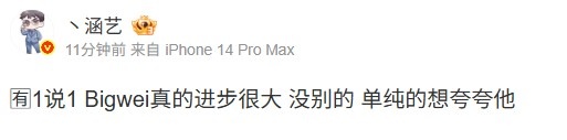 涵艺:有一说一Bigwei真的进步很大 没别的 单纯的想夸夸他