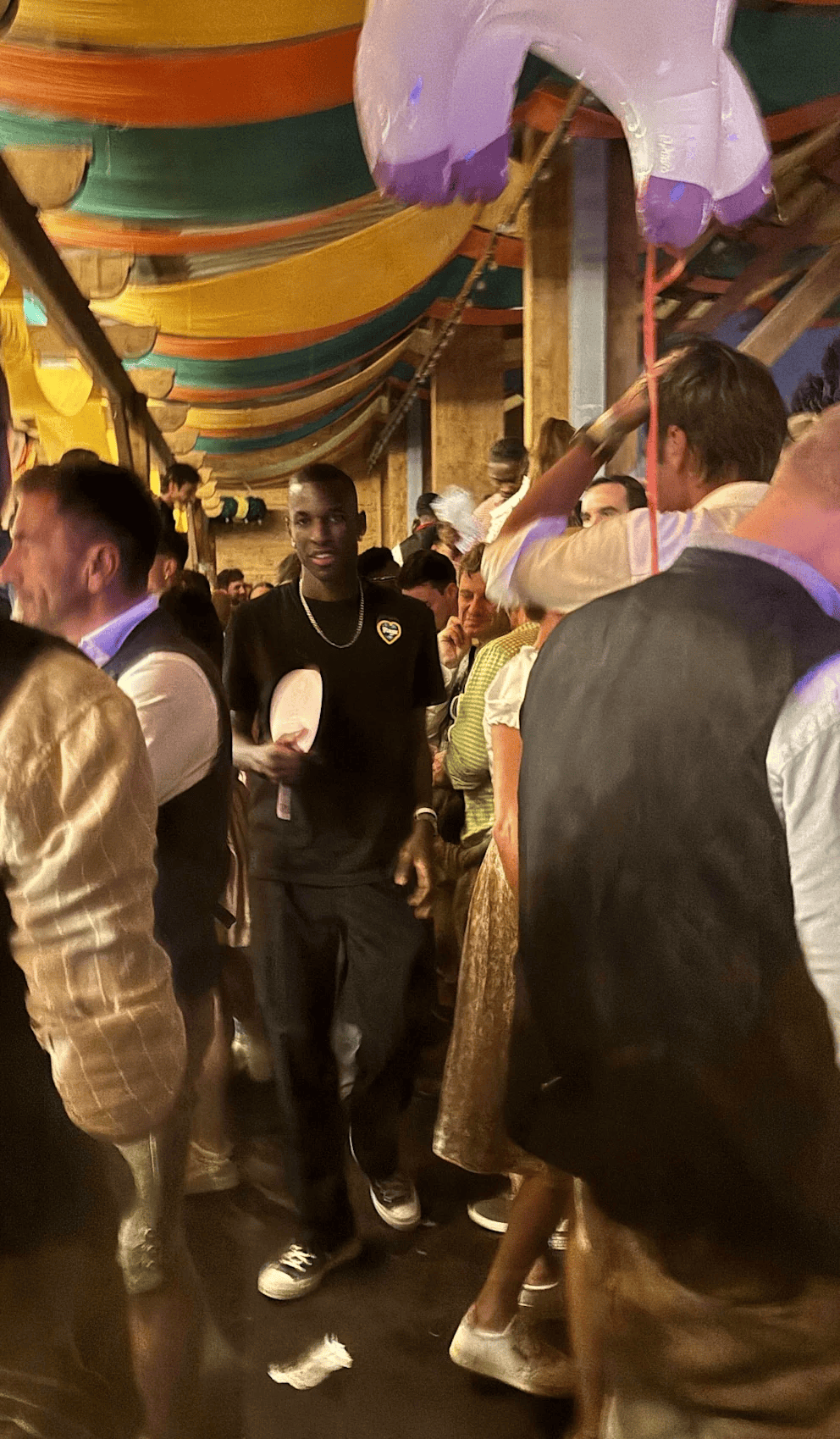在周日没有安排训练的晚上,塞尔吉-格纳布里、乔纳森-塔、阿列克斯-帕夫洛维奇、康拉德、莱默尔和汤姆-比绍夫和他的女友约瑟芬-绍尔(拜仁慕尼黑传奇人物梅赫梅特-绍尔的女儿)被发现出现在啤酒节现场。