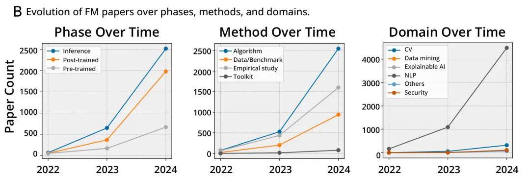 从 2022 年到 2024 年,基础模型的研究在广度和深度上都经历了显著增长。