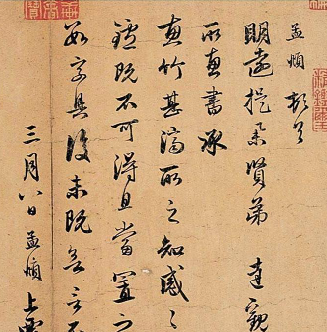 把一个个漂亮的单字串成一行,再把一行行字组成一幅作品,这就是章法。《惠竹帖》是信札,不是正式碑文,所以它的章法尤其自然、随性,充满了书写的“节奏感”。这种节奏感,是我们觉得它“行云流水”的主要原因。