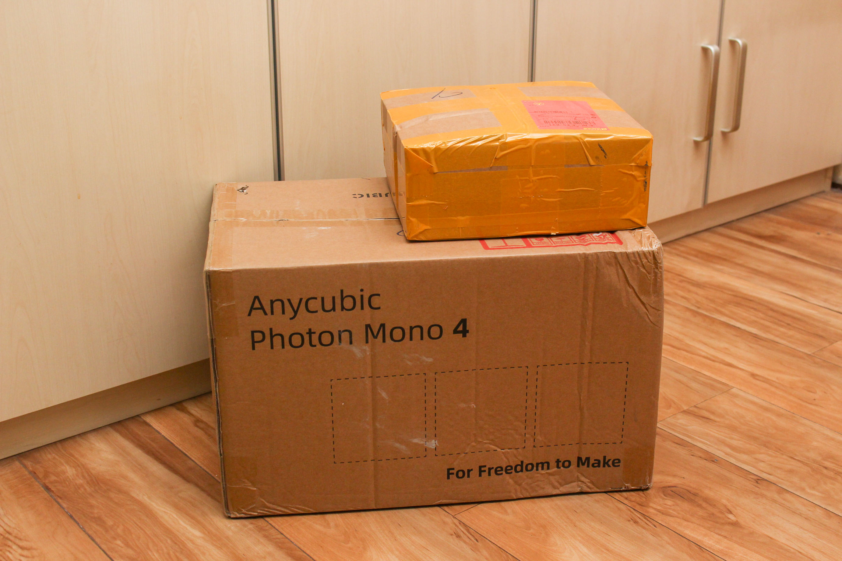 纵维立方Anycubic MONO 4的包装不算太大,同时寄来的是两桶树脂。