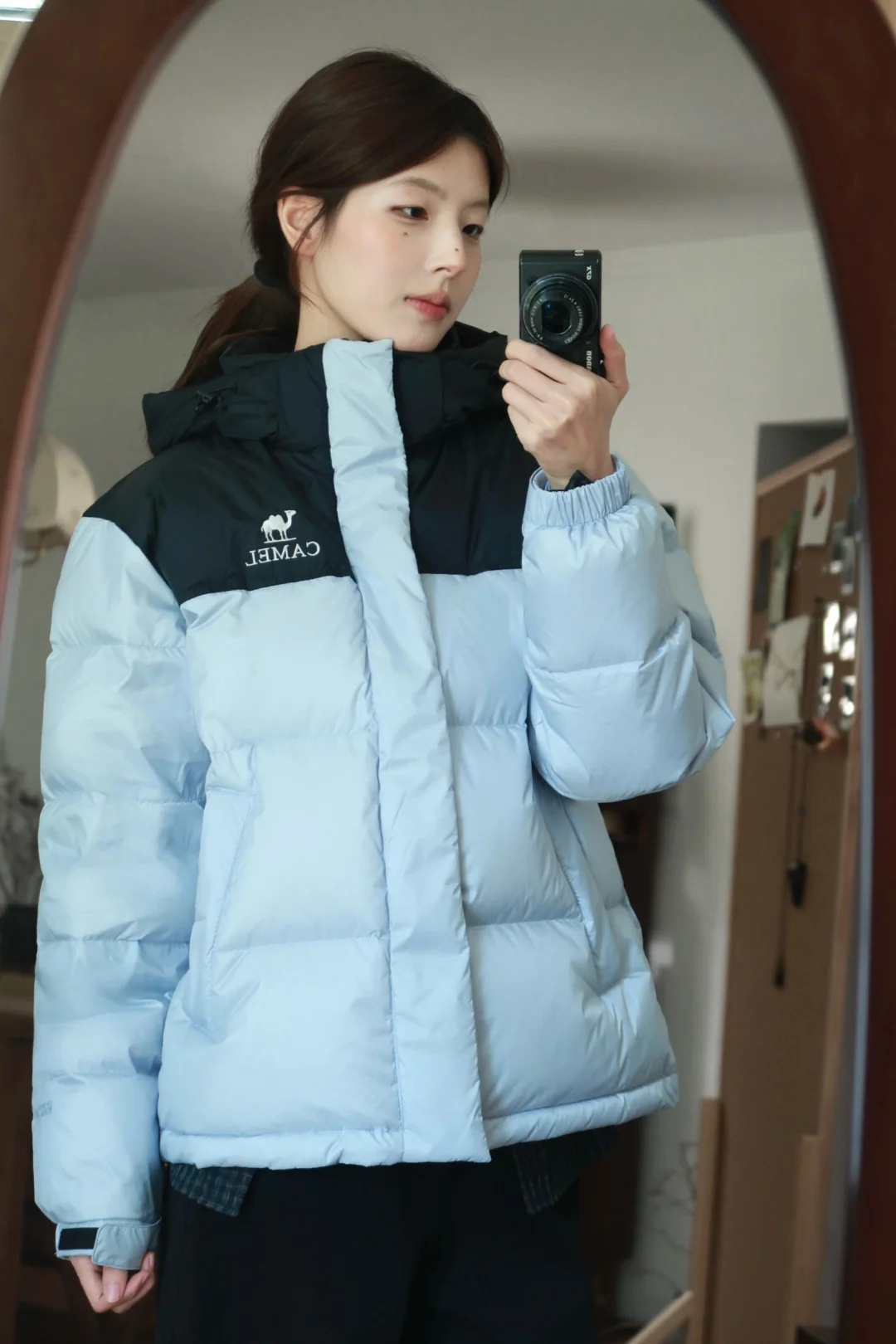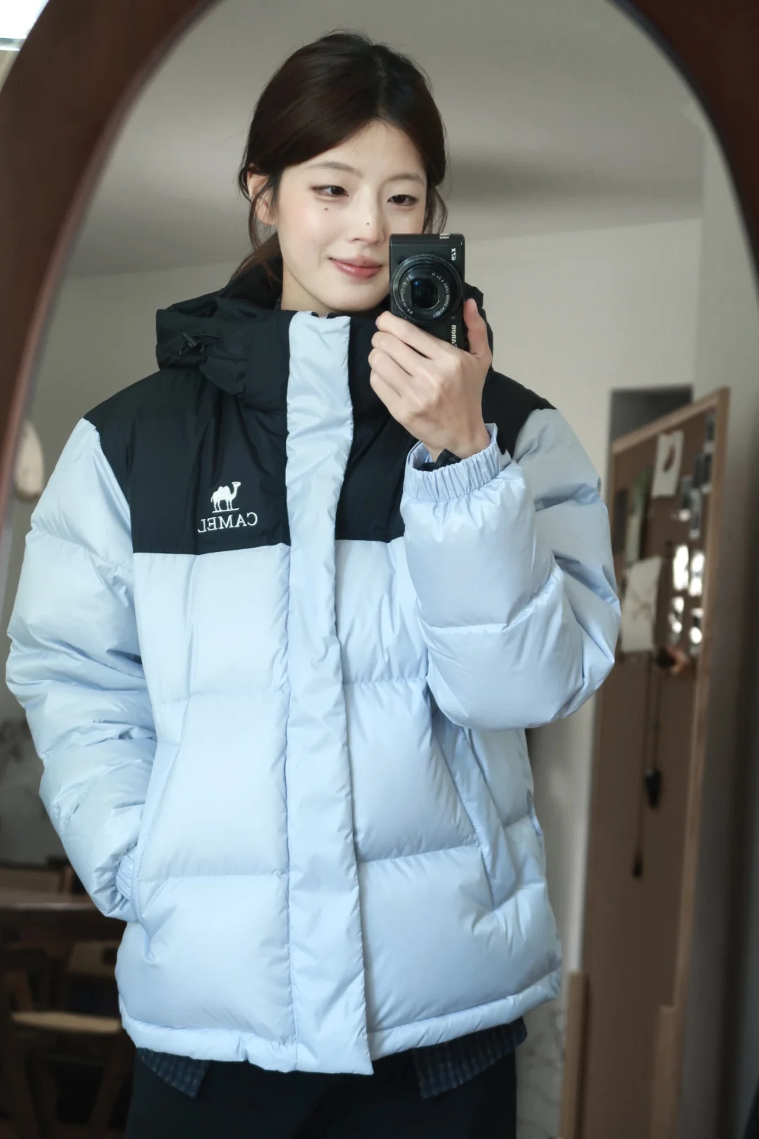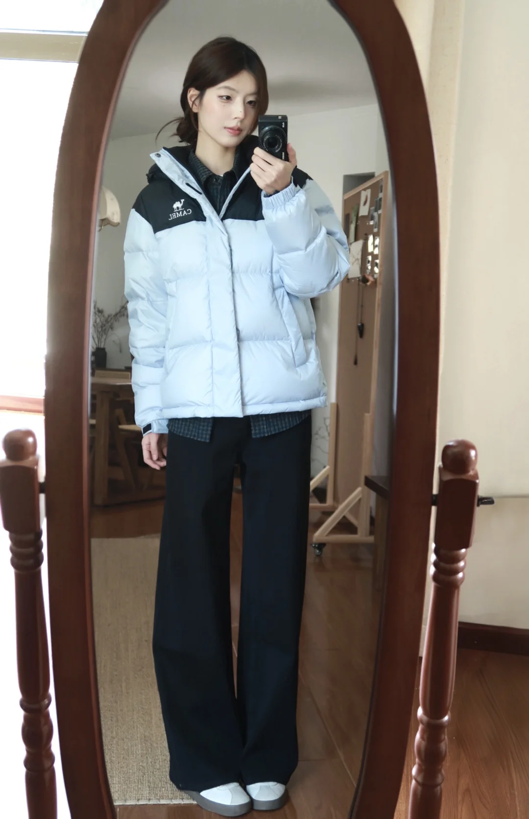 已经做好提前过冬的准备啦~黑蓝拼接的设计打破沉闷增加层次感,被暖暖的包裹着像揣了一个移动小太阳,好幸福~这个冬天拒绝臃肿,美丽和温度我都要!