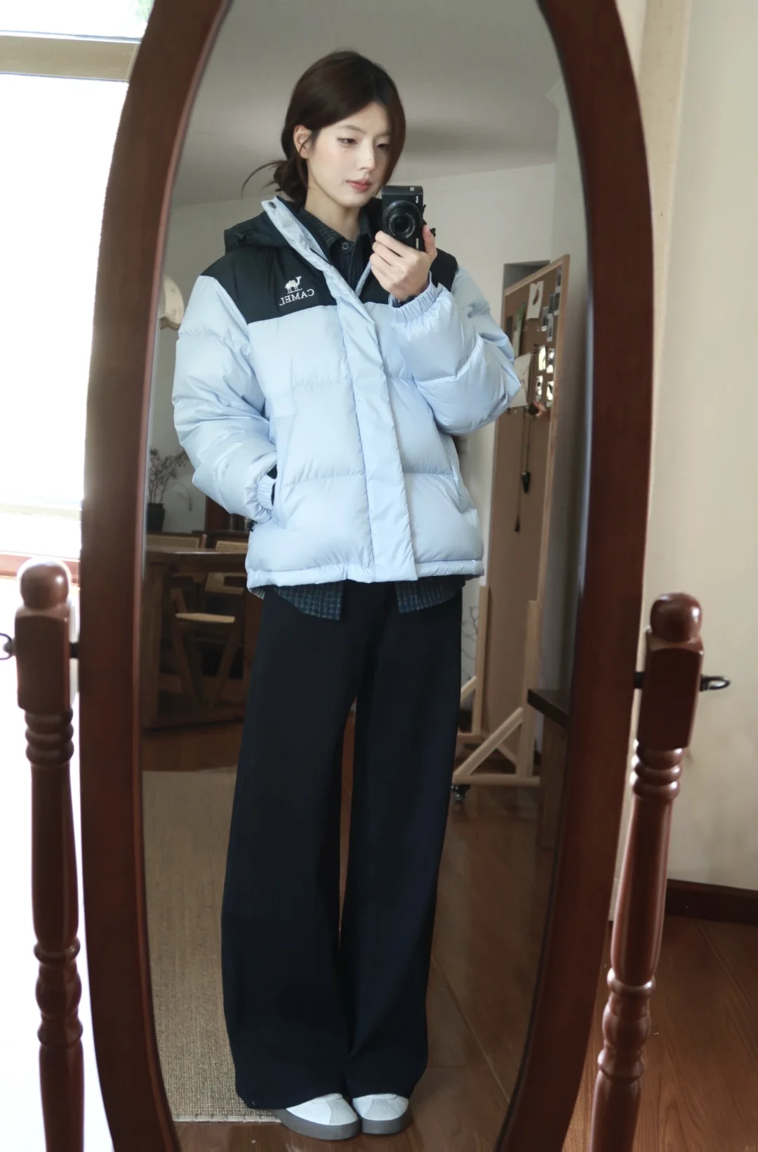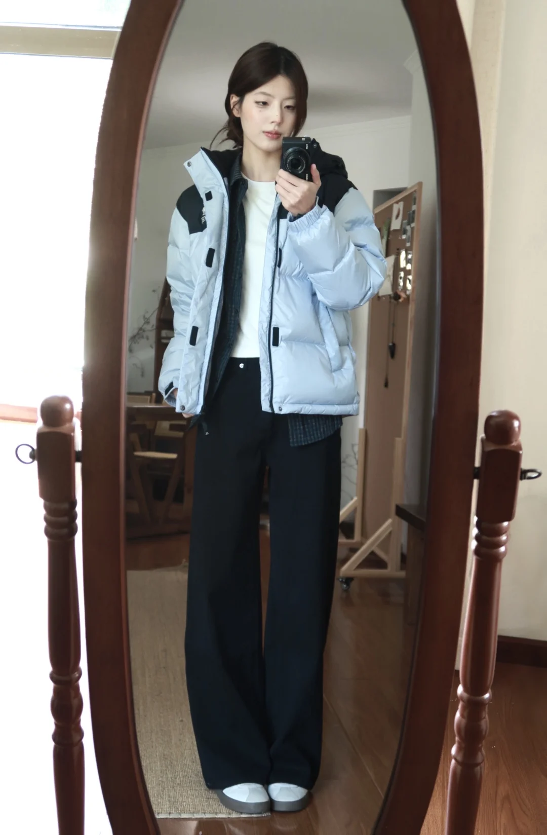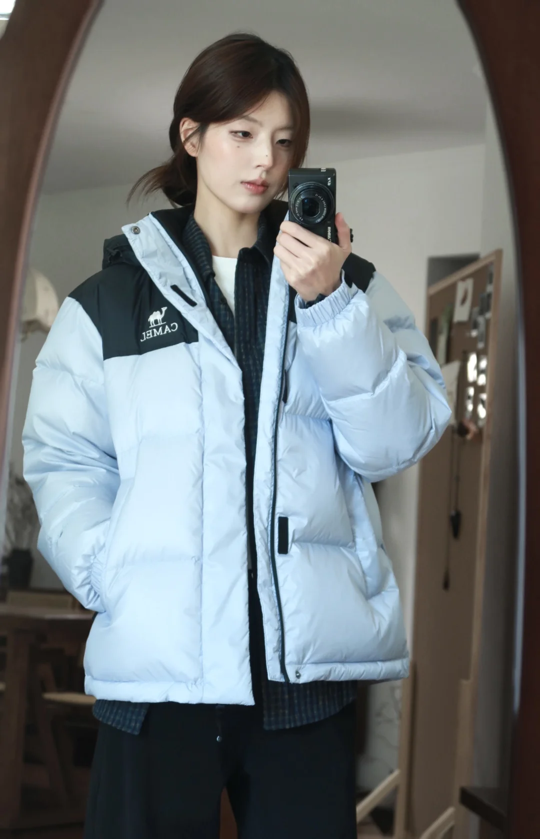 已经做好提前过冬的准备啦~黑蓝拼接的设计打破沉闷增加层次感,被暖暖的包裹着像揣了一个移动小太阳,好幸福~这个冬天拒绝臃肿,美丽和温度我都要!