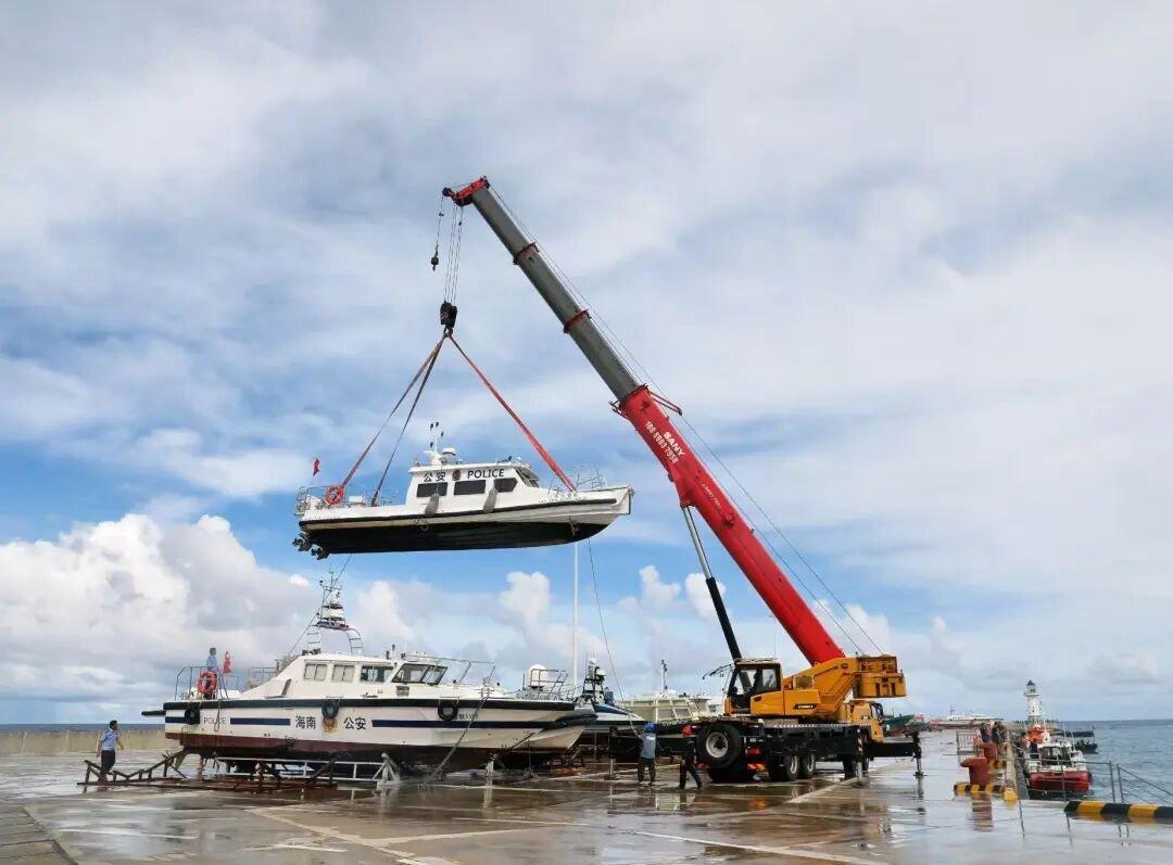 23日上午9时,在永兴综合码头,三沙市多部门联合开展船舶吊装上岸工作。起重机将渔船、冲锋舟、公务船等逐一从海面吊起,稳妥放置在码头地面,并通过绳索进行加固,有效避免强风引发的船舶位移或碰撞。与此同时,三沙七连屿工委组织赵述岛等岛礁渔民积极开展防风工作。截至当日,已顺利完成全部64艘渔船的吊装上岸和加固任务,切实保障渔民财产和船舶安全。