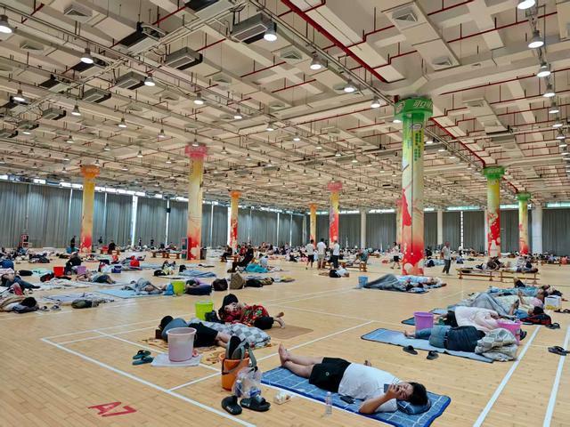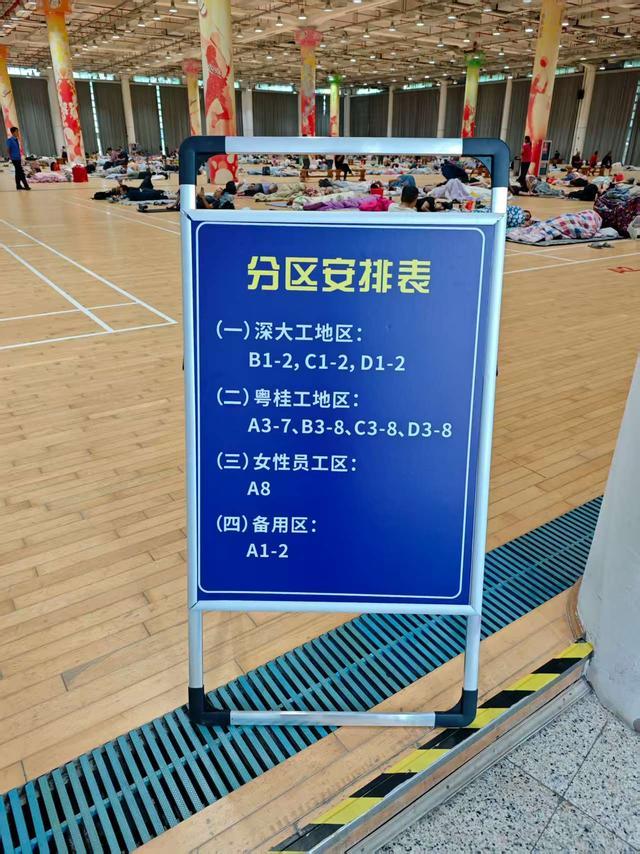 深大羽毛球馆面积约4000平方米,目前已经接纳590人进入休息,多为校内外在建工程的施工人员,以及个别临时避险人员。场地地面为木质地板,设有空调,并为避险人员提供基本生活保障。