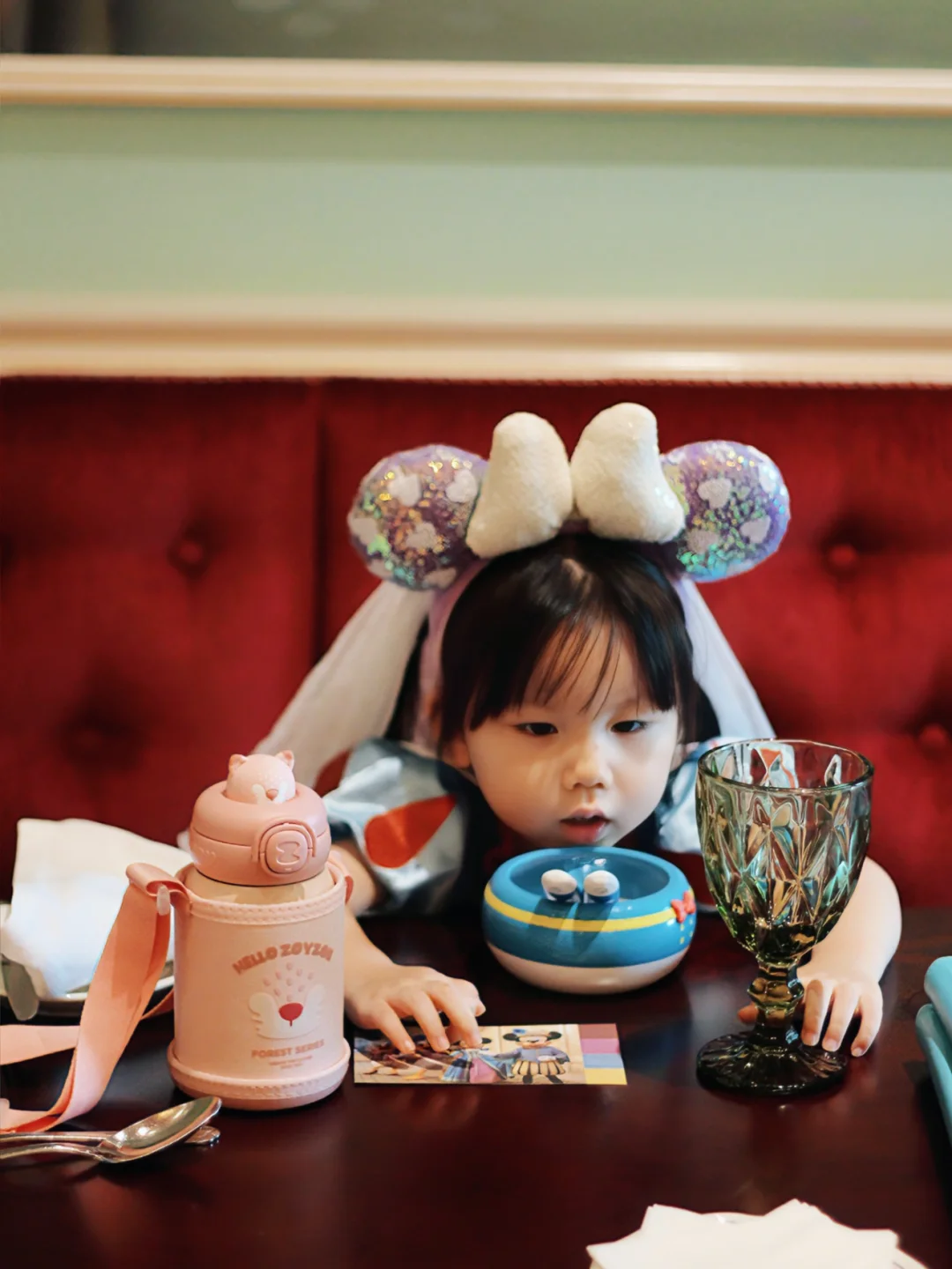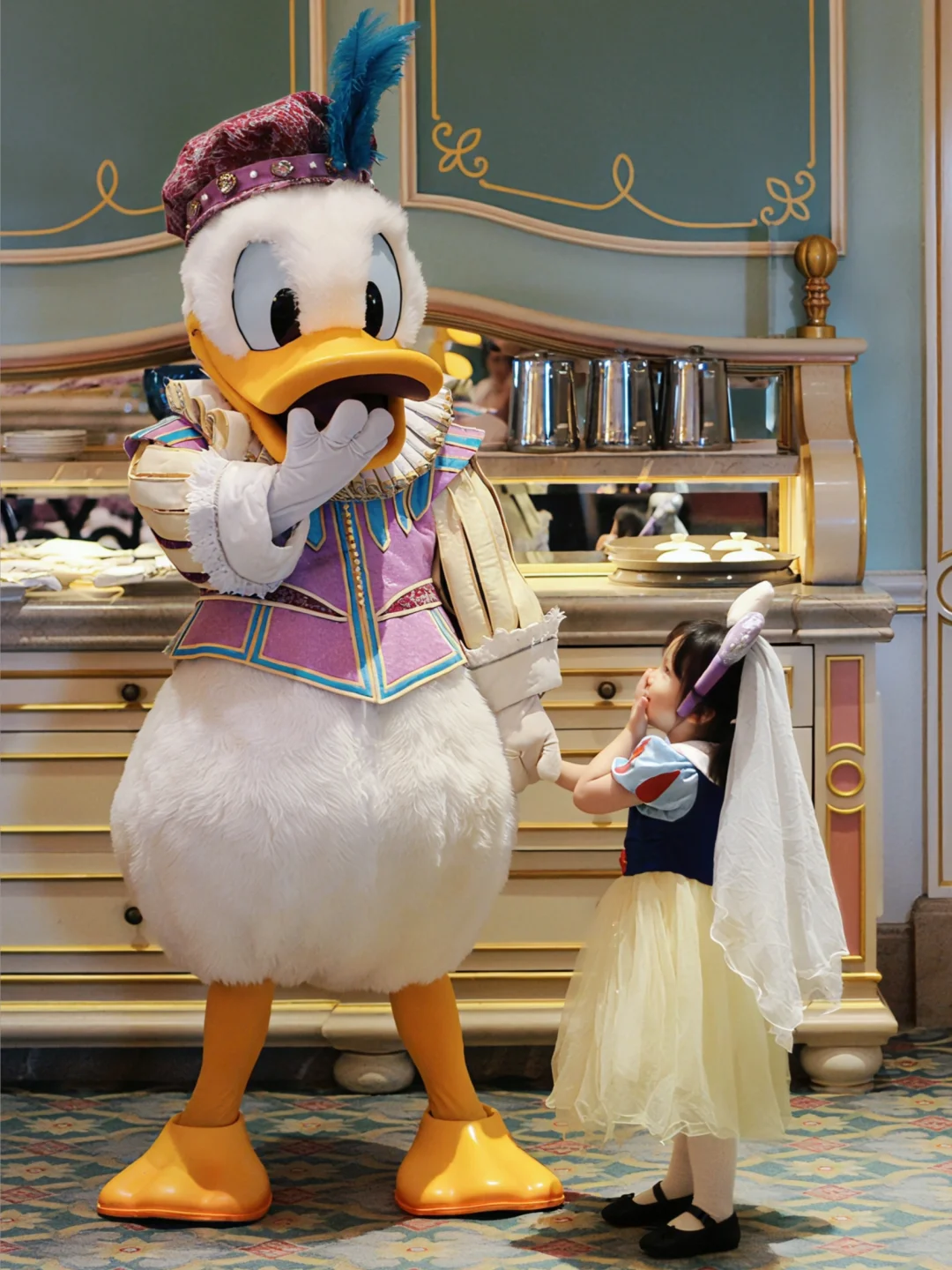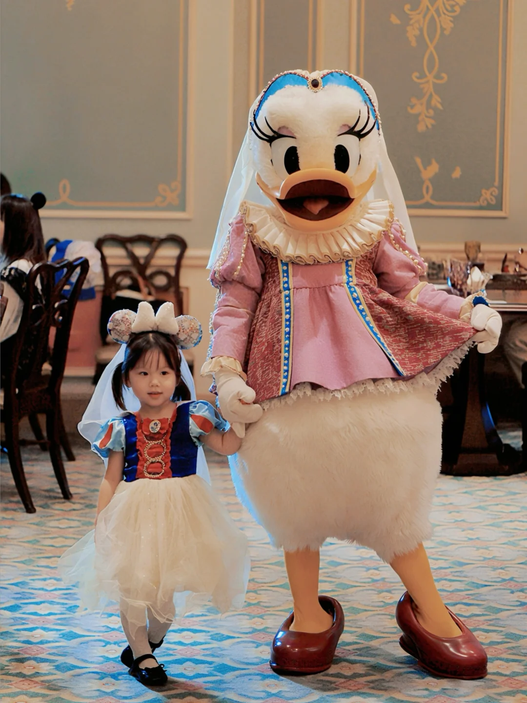 ▪️很多项目受身高限制 所以此行🌟主线任务就是进皇家宴会厅 我们是第一桌 被安排在了最靠近米奇米妮黛西鸭鸭出场的门 娃都是第1️⃣个被邀请互动的 一起跳舞一起吃饭 娃别提多开心了🥳🥳🥳