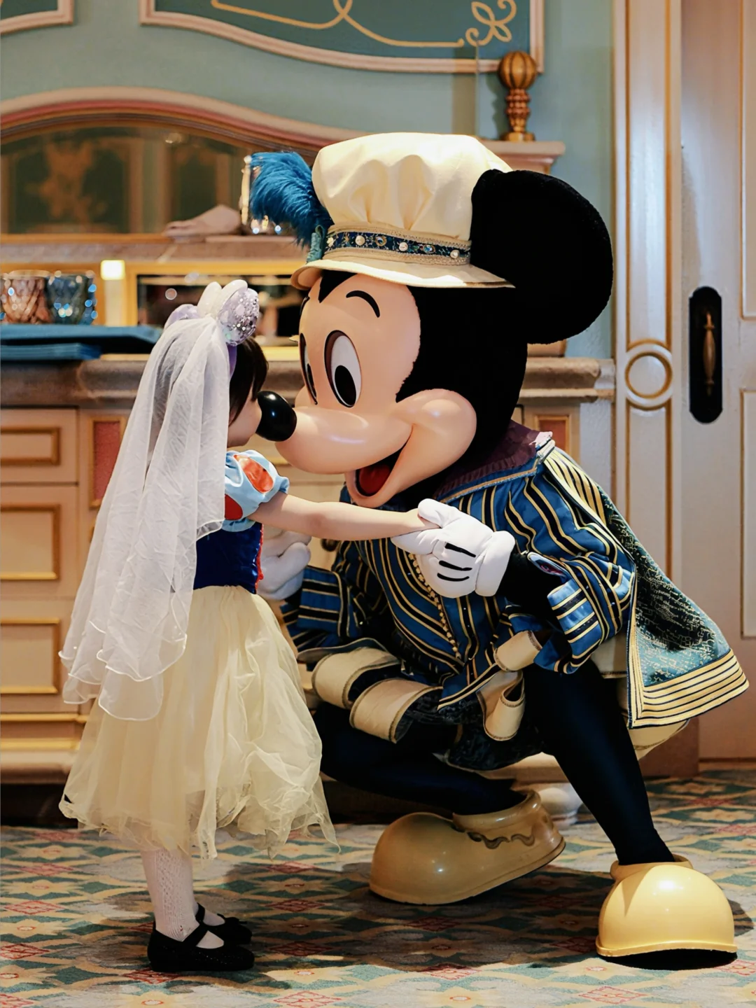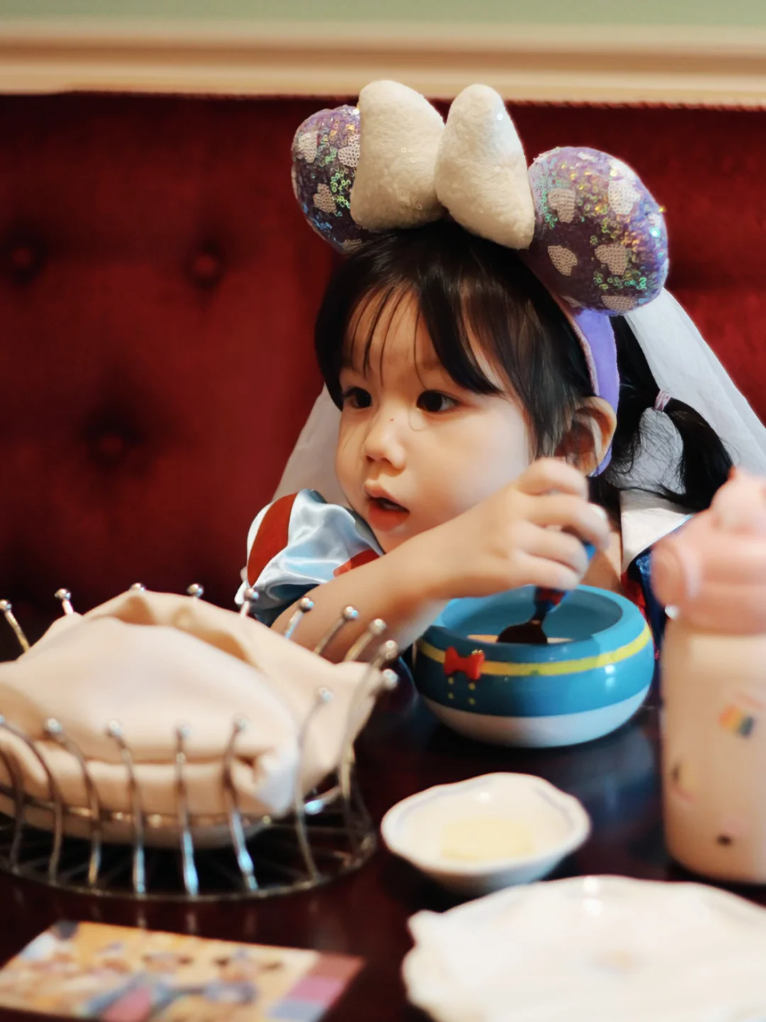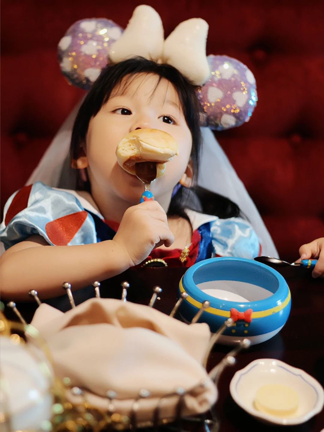 ▪️很多项目受身高限制 所以此行🌟主线任务就是进皇家宴会厅 我们是第一桌 被安排在了最靠近米奇米妮黛西鸭鸭出场的门 娃都是第1️⃣个被邀请互动的 一起跳舞一起吃饭 娃别提多开心了🥳🥳🥳