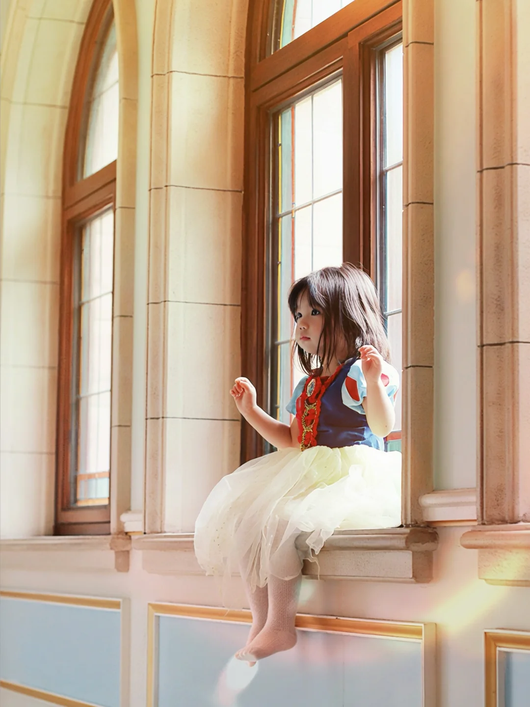 ▪️漫游童话时光 冷门却是宝宝zui爱的 因为穿了白雪公主的裙子 演职人员看到 都会热情的欢迎公主回家👸🏻坐在窗台上的女儿 此刻真的就像白雪公主一样闪闪发光