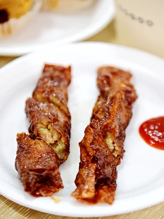 😋五香卷焦黄油润,闪着诱人的光泽,外皮香酥内馅扎实,香喷喷一口入魂。