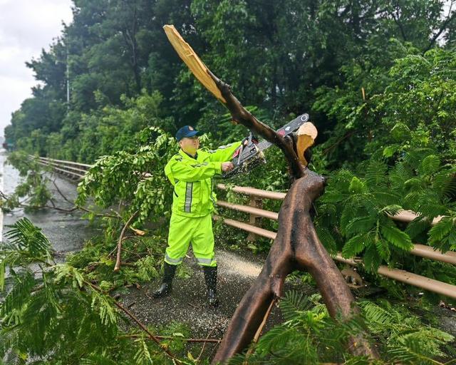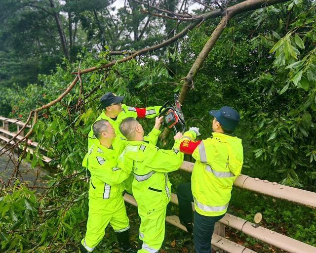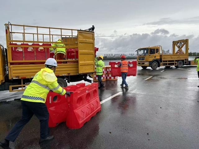 虎门大桥于15时开展抢险清障工作,共集结20名抢险队员,出动14辆施工车辆,处理2棵倒伏树木,1处标牌,清理障碍物9处。
