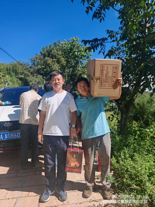 中秋佳节将至,为切实让昆明市禄劝彝族苗族自治县撒营盘镇三合村困难群众感受到党和社会的关怀与温暖,9月23日,三合村驻村工作队联合昆明经开区党群工作部、昆明经开区市场监管分局、经开区“小个专”,携手云南潘祥记工贸有限公司共同走进三合村,开展“情暖中秋,爱满乡村”爱心捐赠活动,为村内监测户、贫困老党员、低保户、孤寡老人、困境儿童等困难群体送上节日祝福与慰问物资。