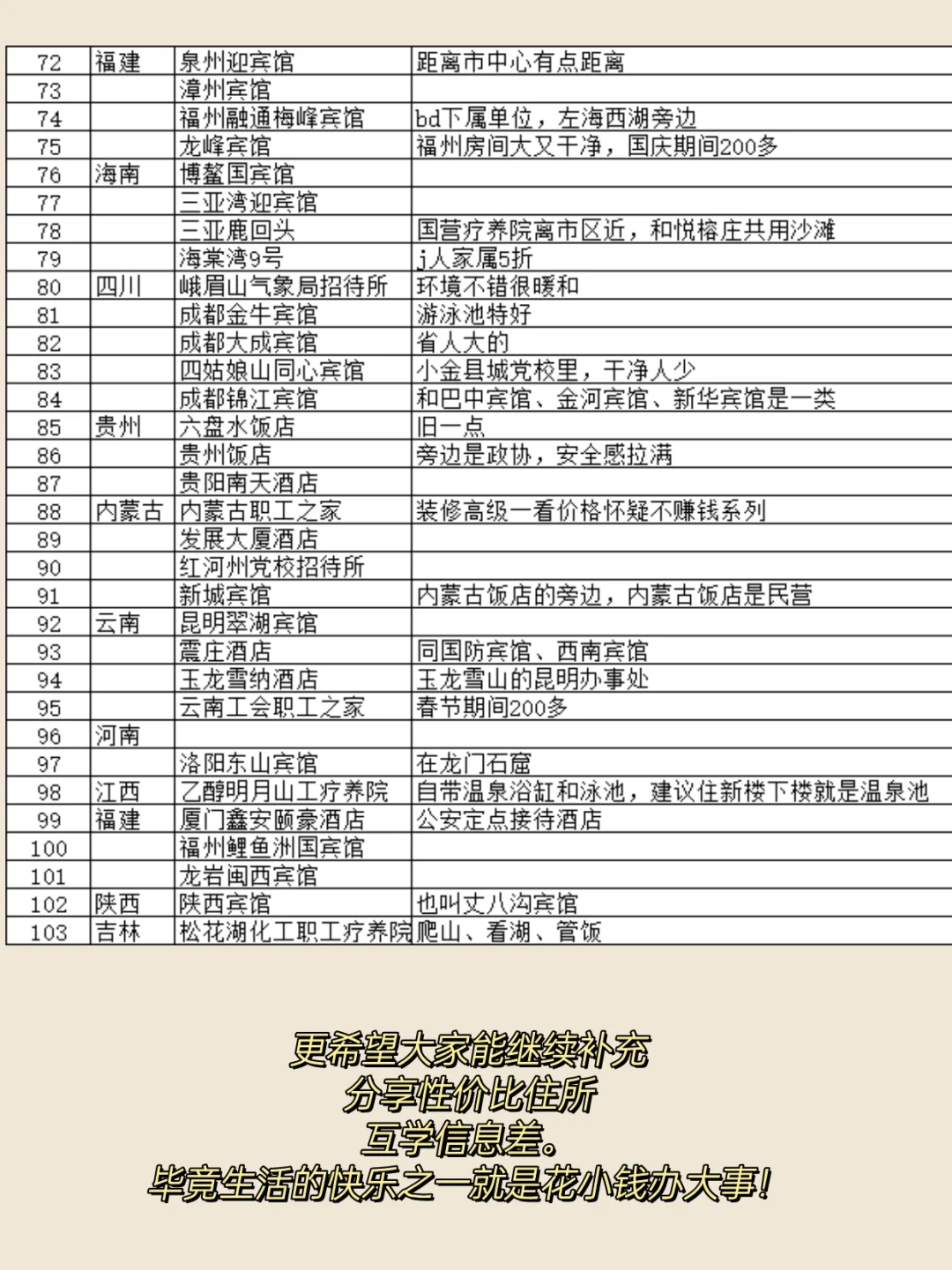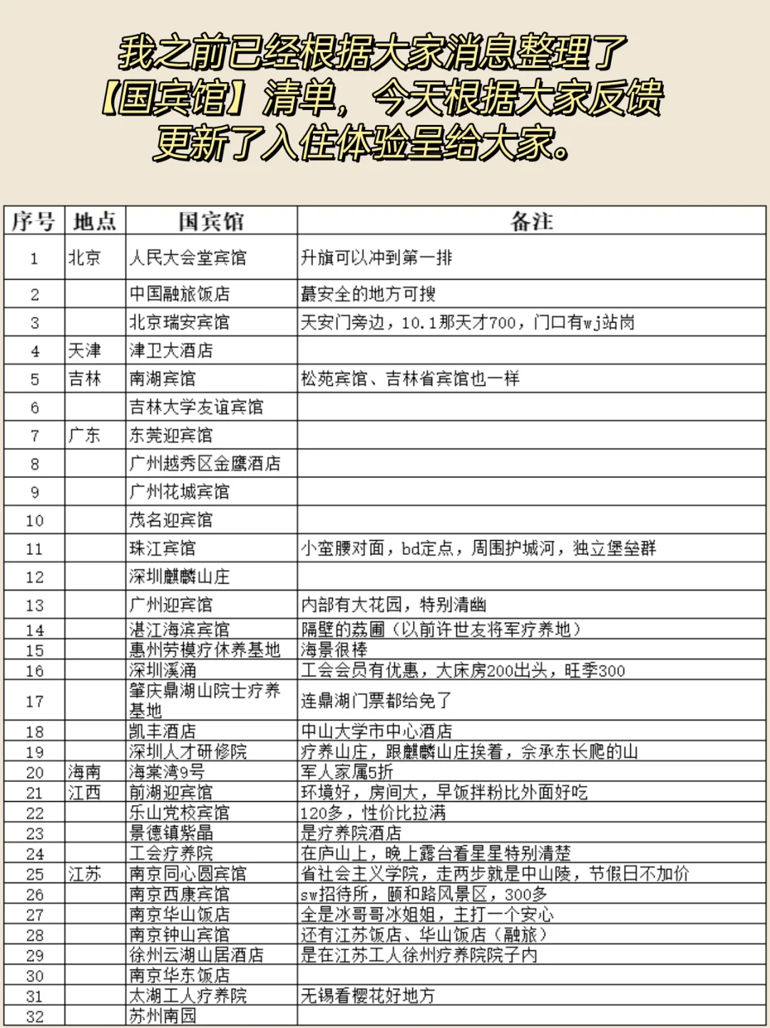 每个地市都有。但因没盈利指标,不会额外宣传。全靠体 制内朋友口口相传,我之前根据大家消息整理了国宾馆清单,今天根据大家反馈更新了入住体验以形成新图片清单。愿姐妹们继续补充,分享性价比住所,互学信息差。一起花小钱办大事!