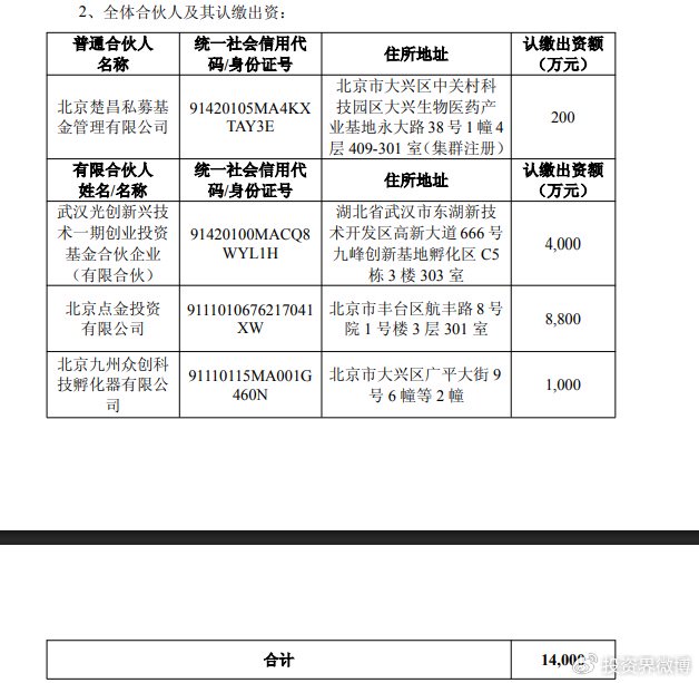 据公告,该产业基金总认缴出资额为1.4亿元,将主要投资于创新型医疗器械、消费医疗、生命科学服务、生物制药等领域。基金的其他出资方包括武汉光创新兴技术一期创业投资基金合伙企业(有限合伙)、北京点金投资有限公司及北京楚昌私募基金管理有限公司。