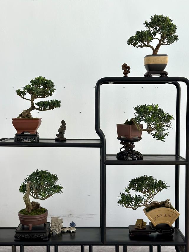 比如,扬派盆景以江苏扬州、泰州等地区为核心,是中国盆景五大传统流派之一。这些盆景以“一寸三弯”的精细扎剪技法见长,通过棕丝蟠扎将枝干扭旋成“云片”状,层次分明如叠翠。多选用黄杨、五针松等素材,讲究“桩必古老、片必平整”,风格清秀雅致,兼具严谨章法与自然意趣。