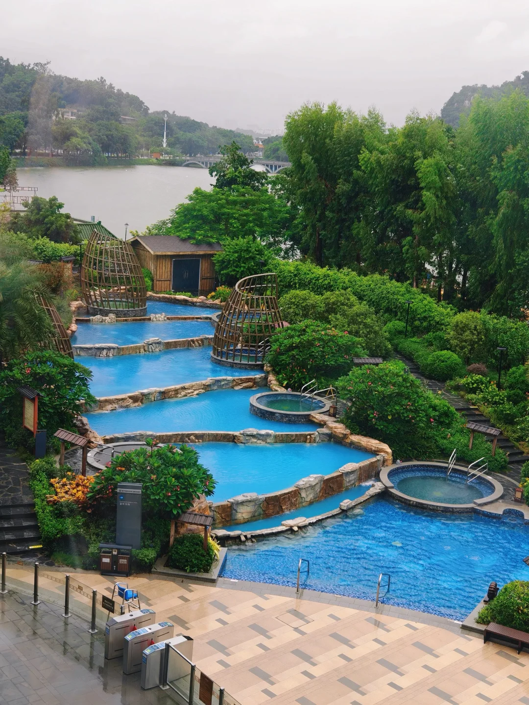 ▪️户外水乐园:13个矿泉泡池(爸妈躺平必备)+儿童戏水区(水深0.5米+全天救生员),娃抱着小滑梯和喷水蘑菇疯玩1h!这里还有造浪池,浪高仅0.3米,低龄娃也能放心冲~🌊