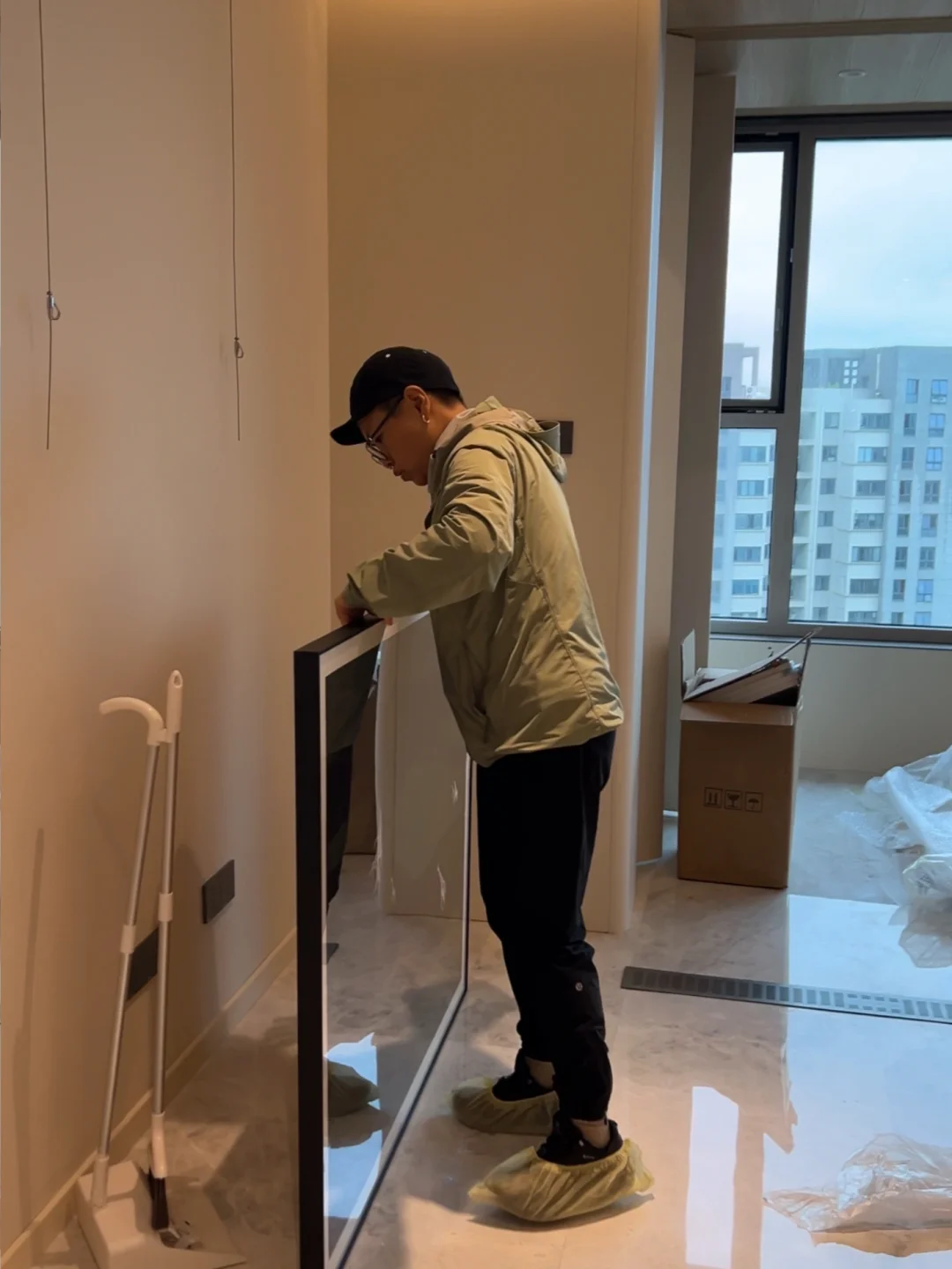 中宁府挂画现场🔚 软装收尾阶段等保洁进场,现场落地质感拉满,改造后的阳台功能实用性与美观兼具~ 期待后续的软装进场🥰 -