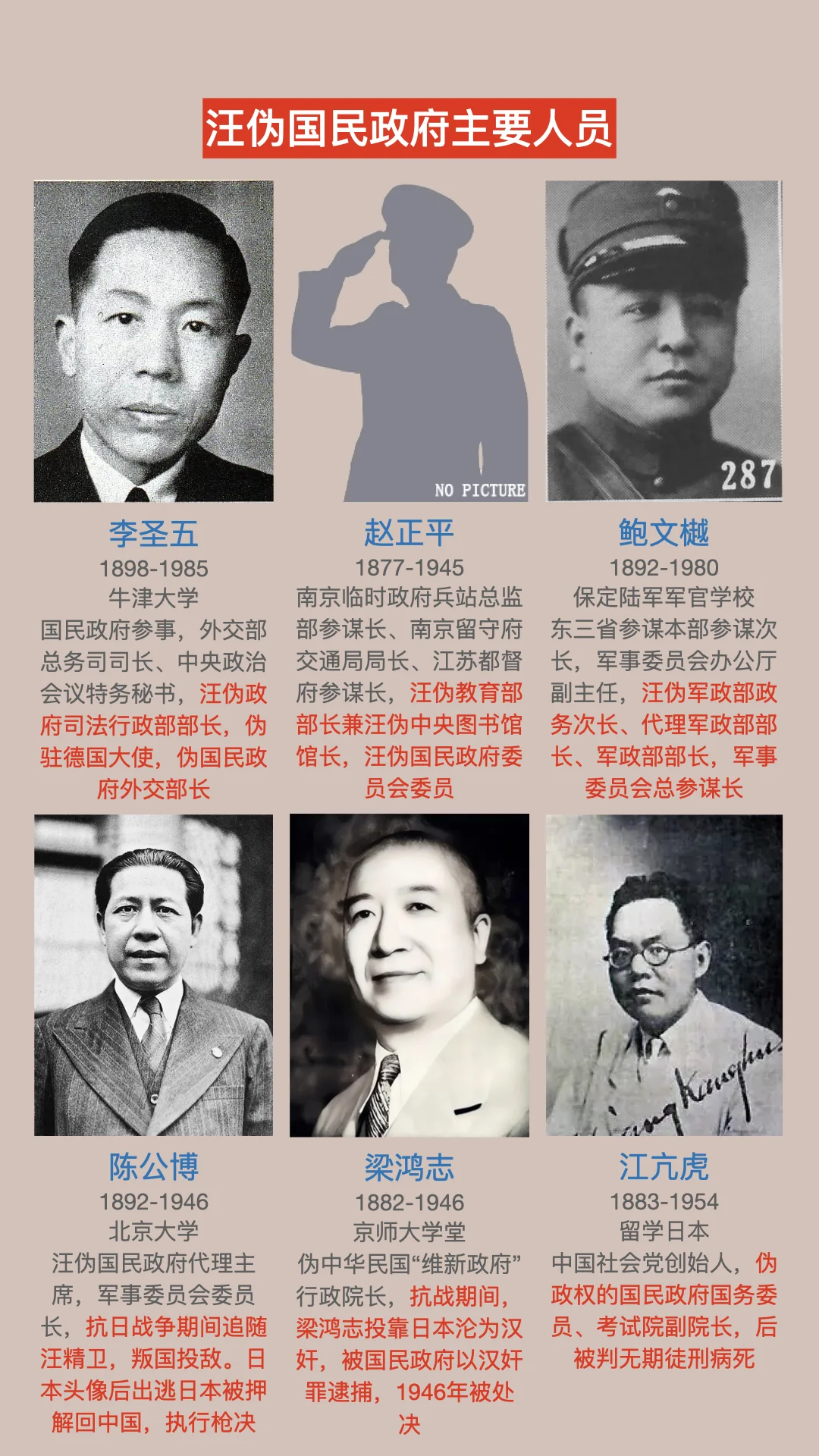 汪精卫 周佛海 陈公博 汪伪汉奸丁默邨 梅思平 褚民谊 陈群 汉奸