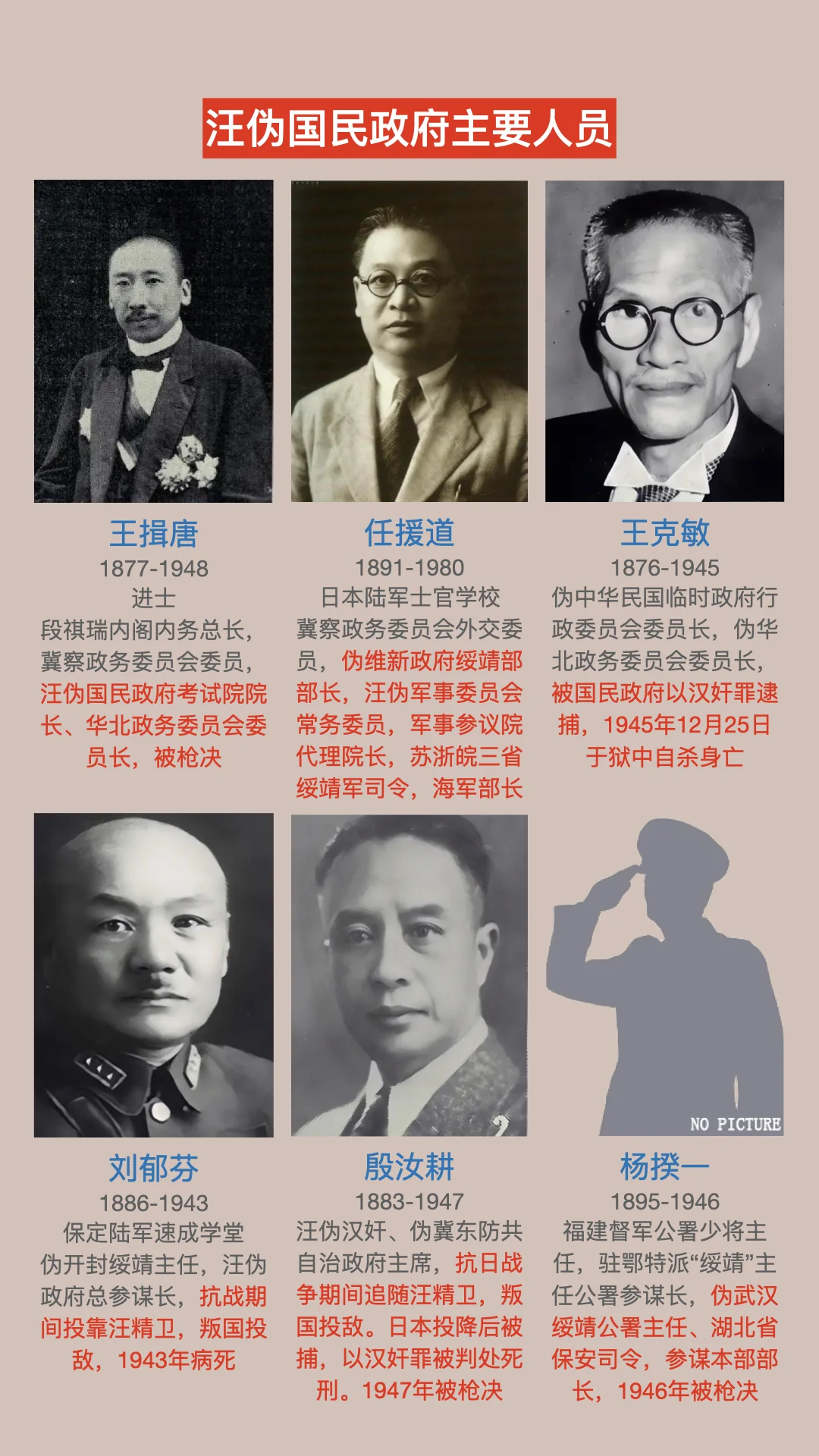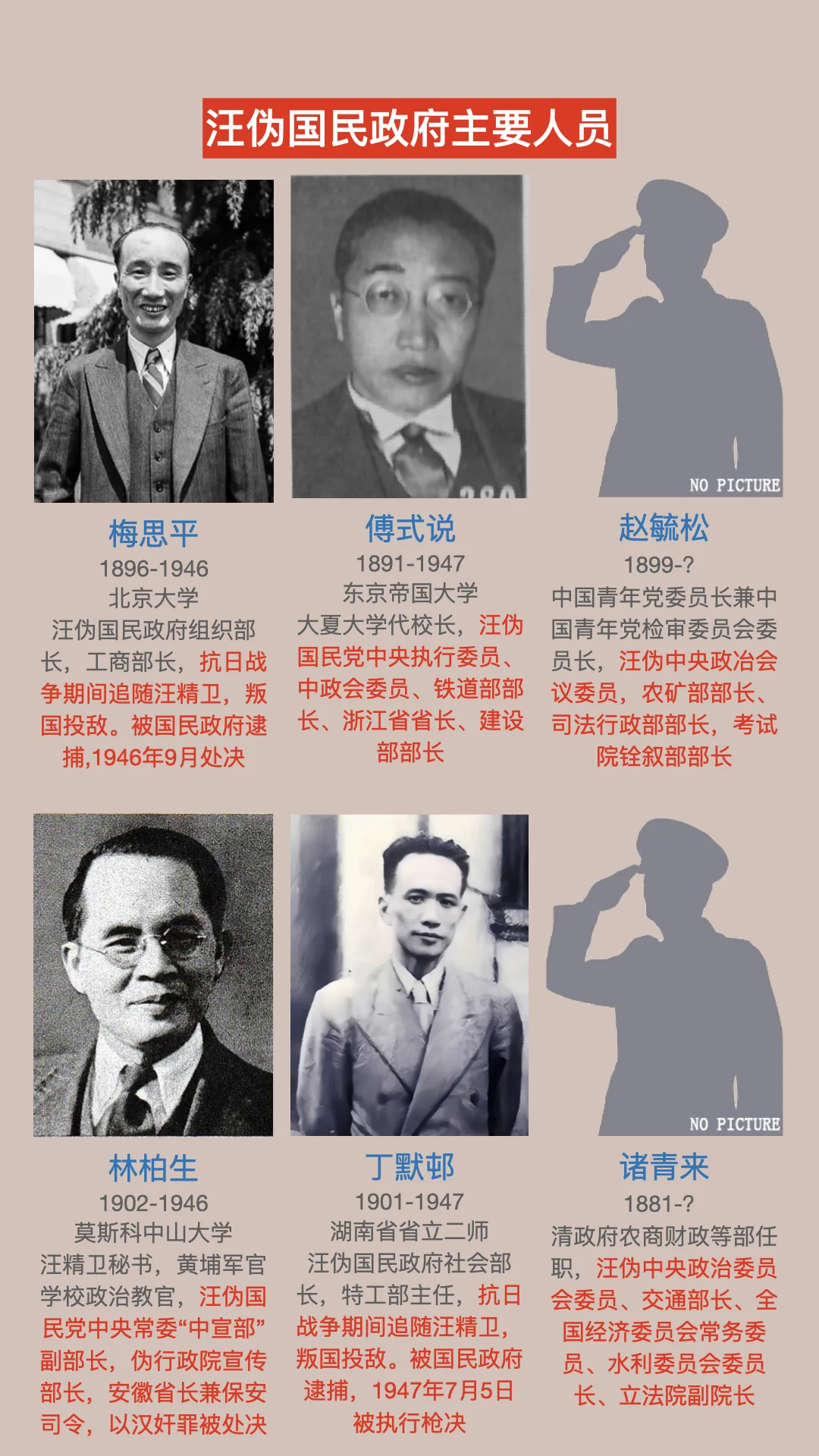 汪伪国民政府主要人员