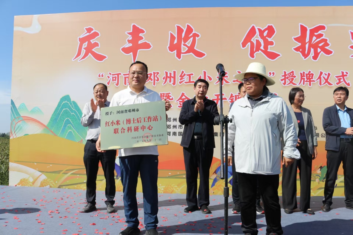 活动现场,交织着荣誉与丰收的喜悦。河南省邓州市被正式授予“红小米之乡”称号,河南国韵光照酒业集团有限公司红小米种植基地获“红小米种植示范基地”认定,河南省邓州市红小米(博士后工作站)联合科研中心同步挂牌。