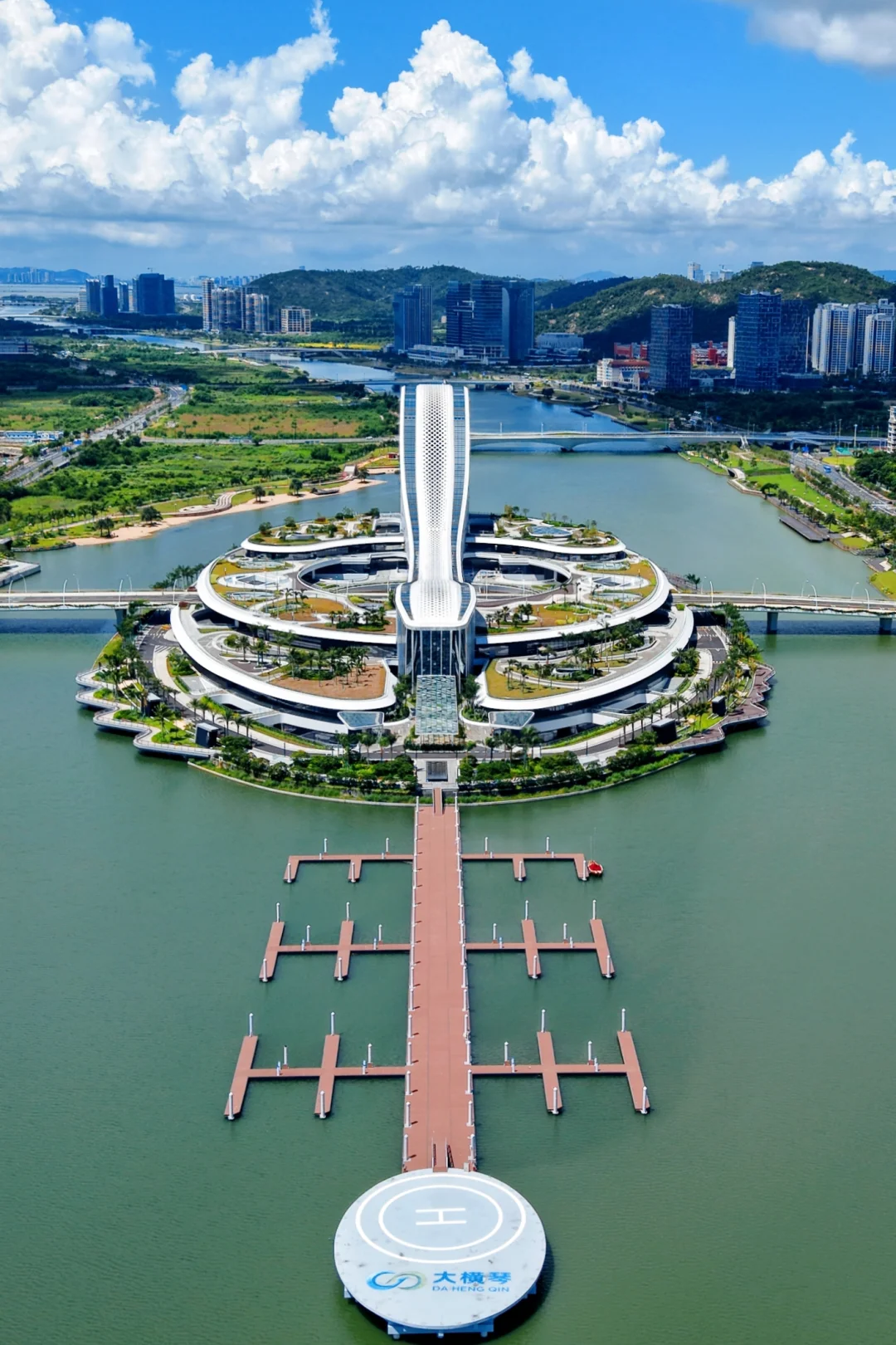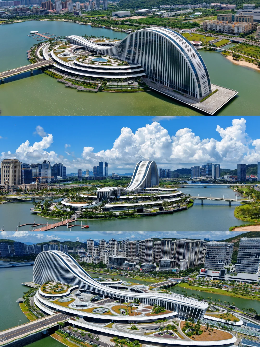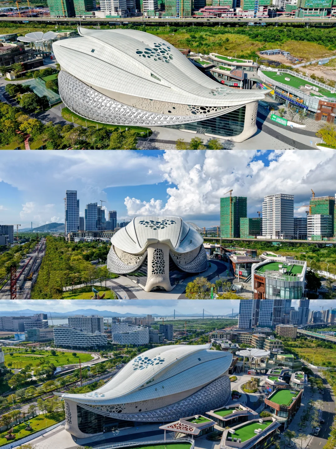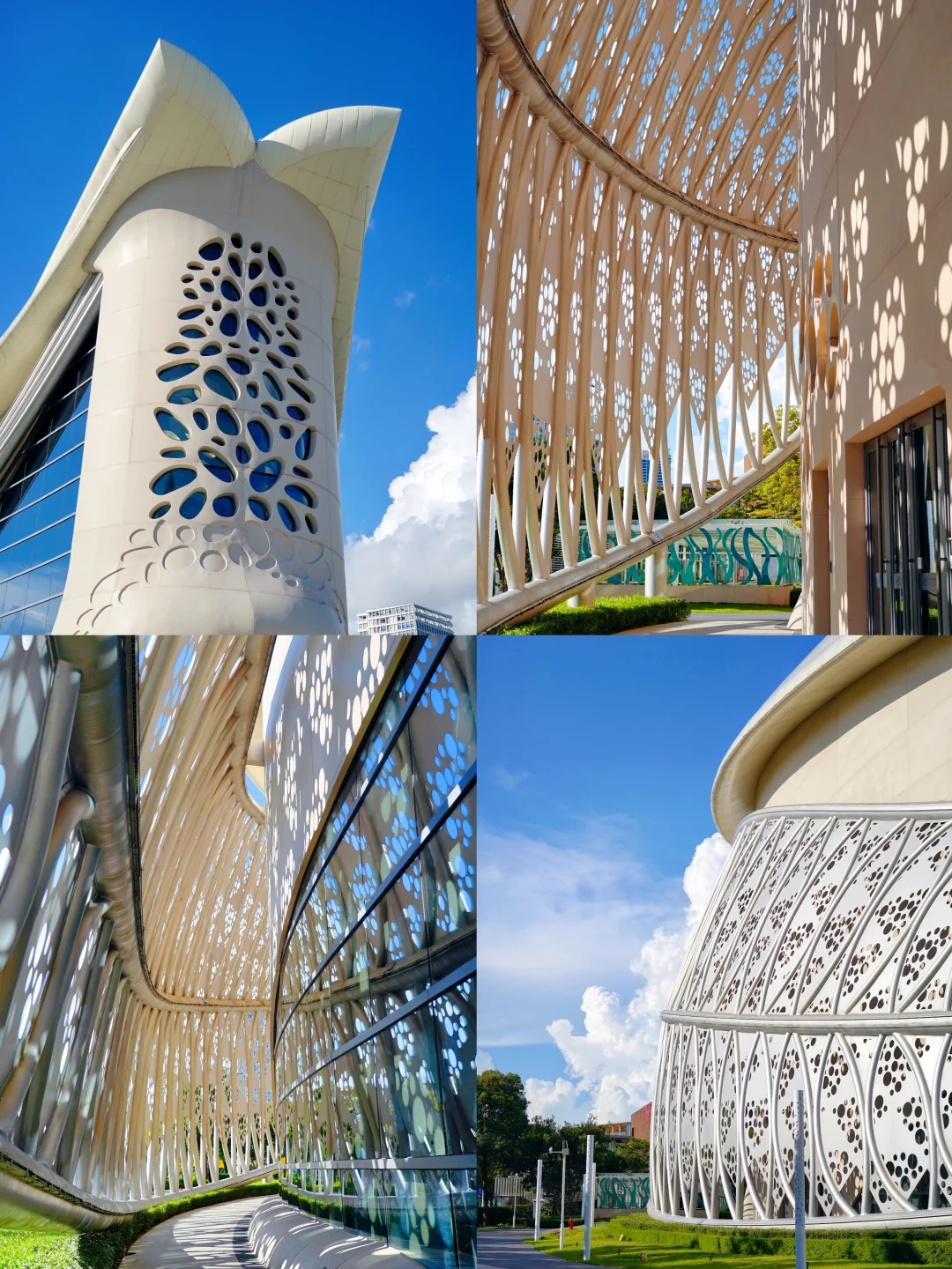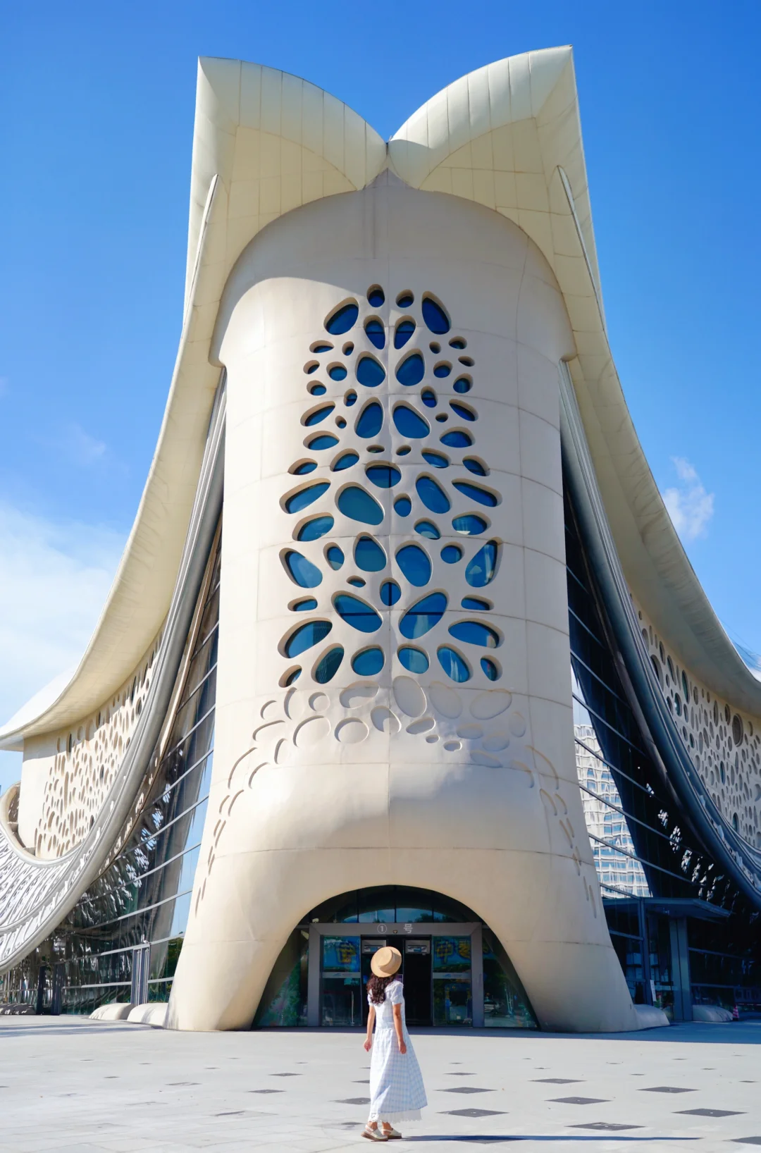 澳门与珠海合作设计的博物馆,航拍下像一朵莲花,入口前仰望又像一只鲸鱼,很特别的设计