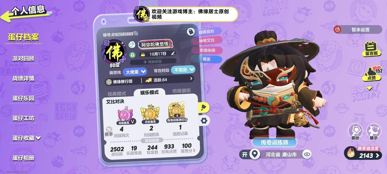 佛缘居士原创视频:Eggy Party 蛋仔派对 蛋仔派對 エギーパーティー 第26赛季国宝归乡季神奇艾比本人霜糖蛤蜊资质特性展示 制作时间:2025.09.27蛋仔派对 艾比