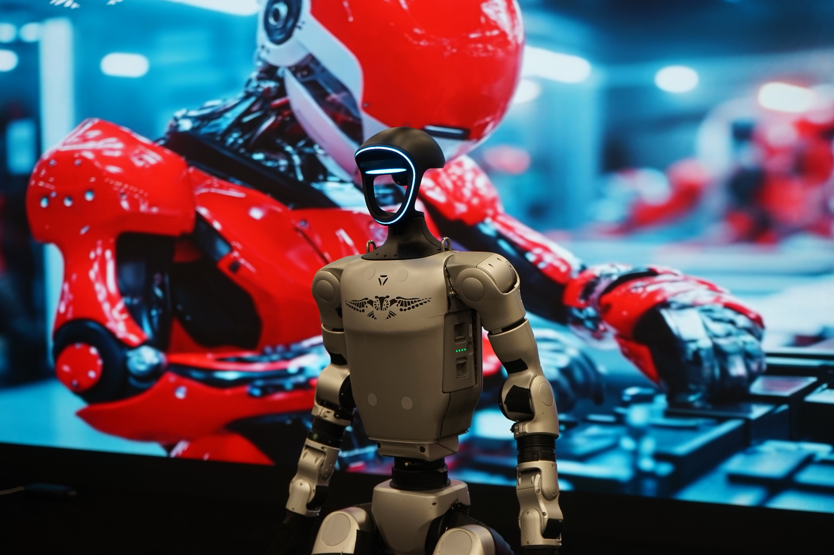 美国拉斯维加斯消费电子展OldWorldLabs展区的机器人展示(1月8日摄)。图据新华社