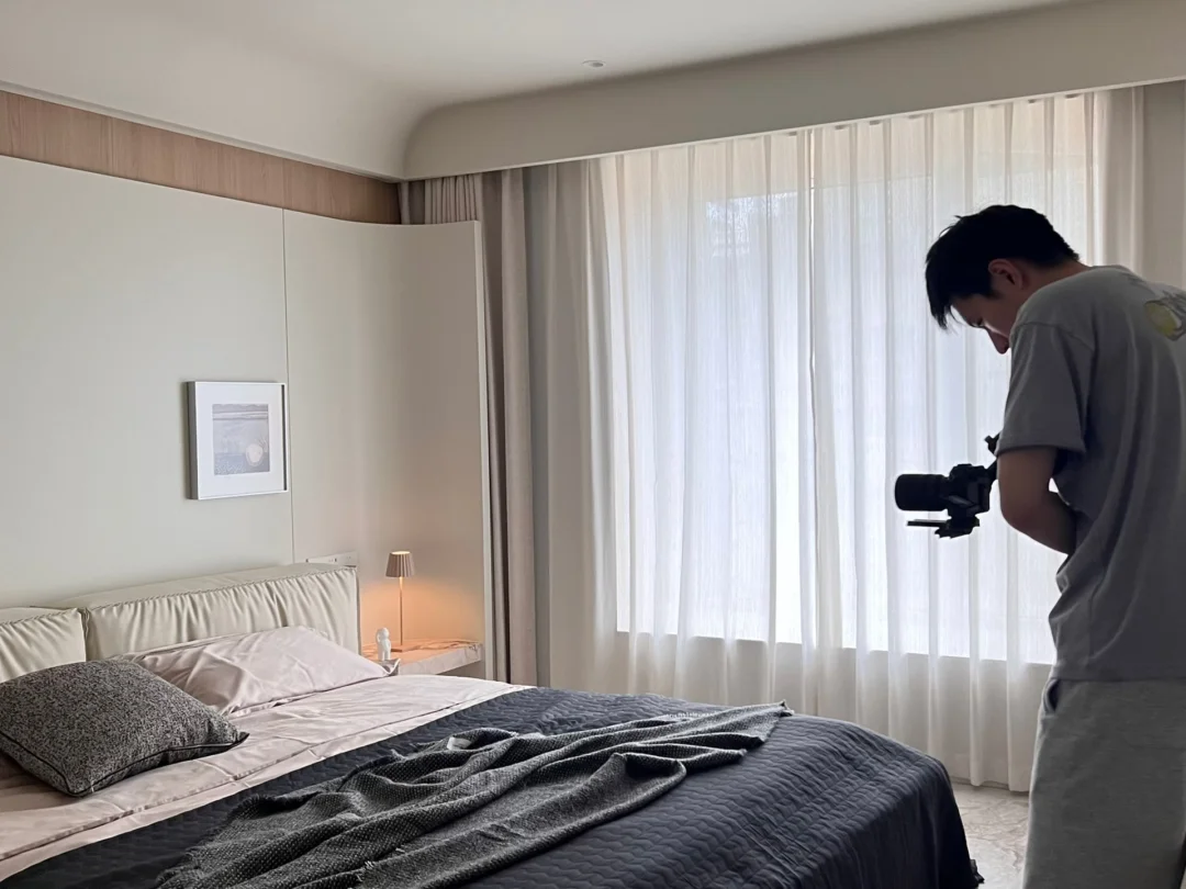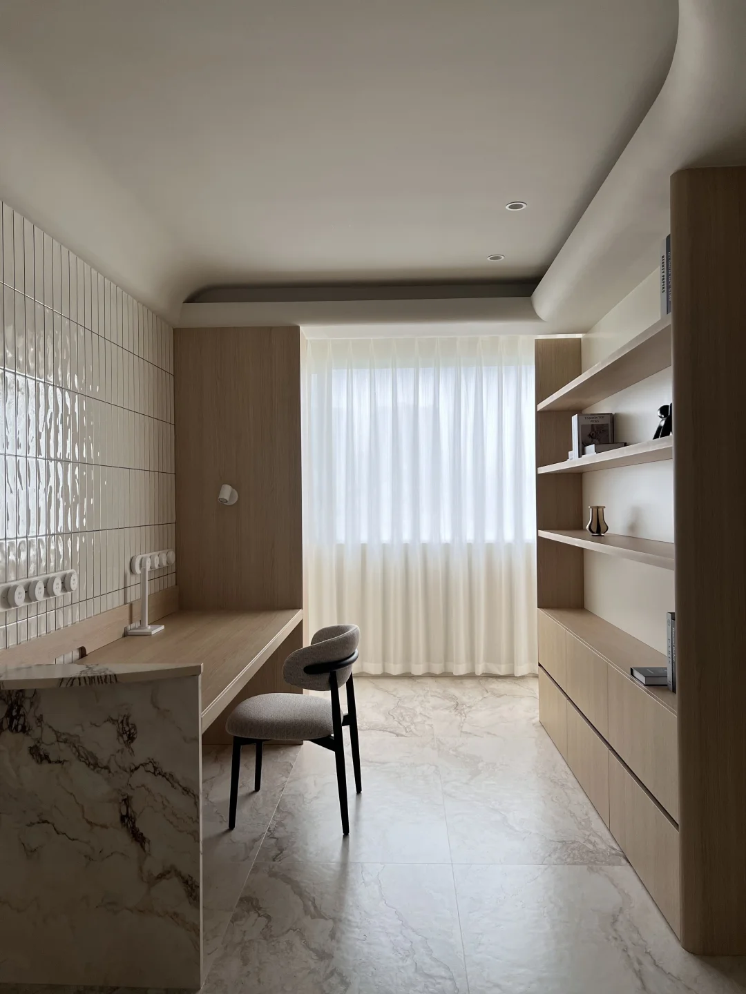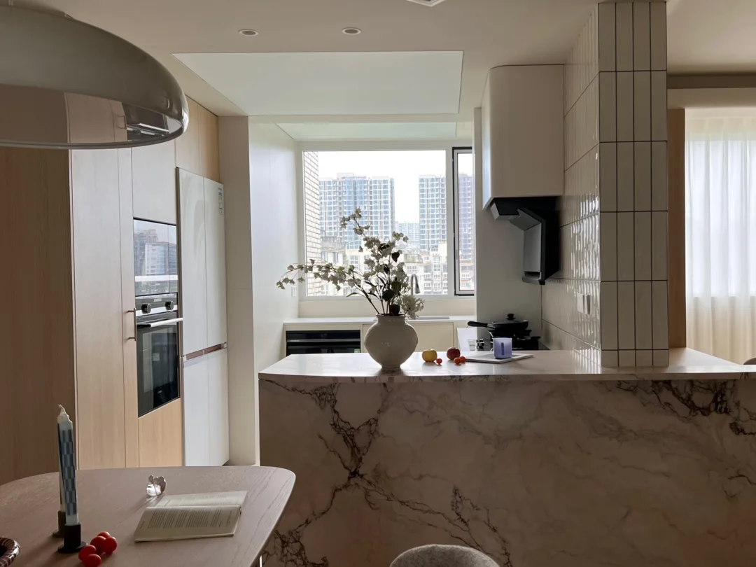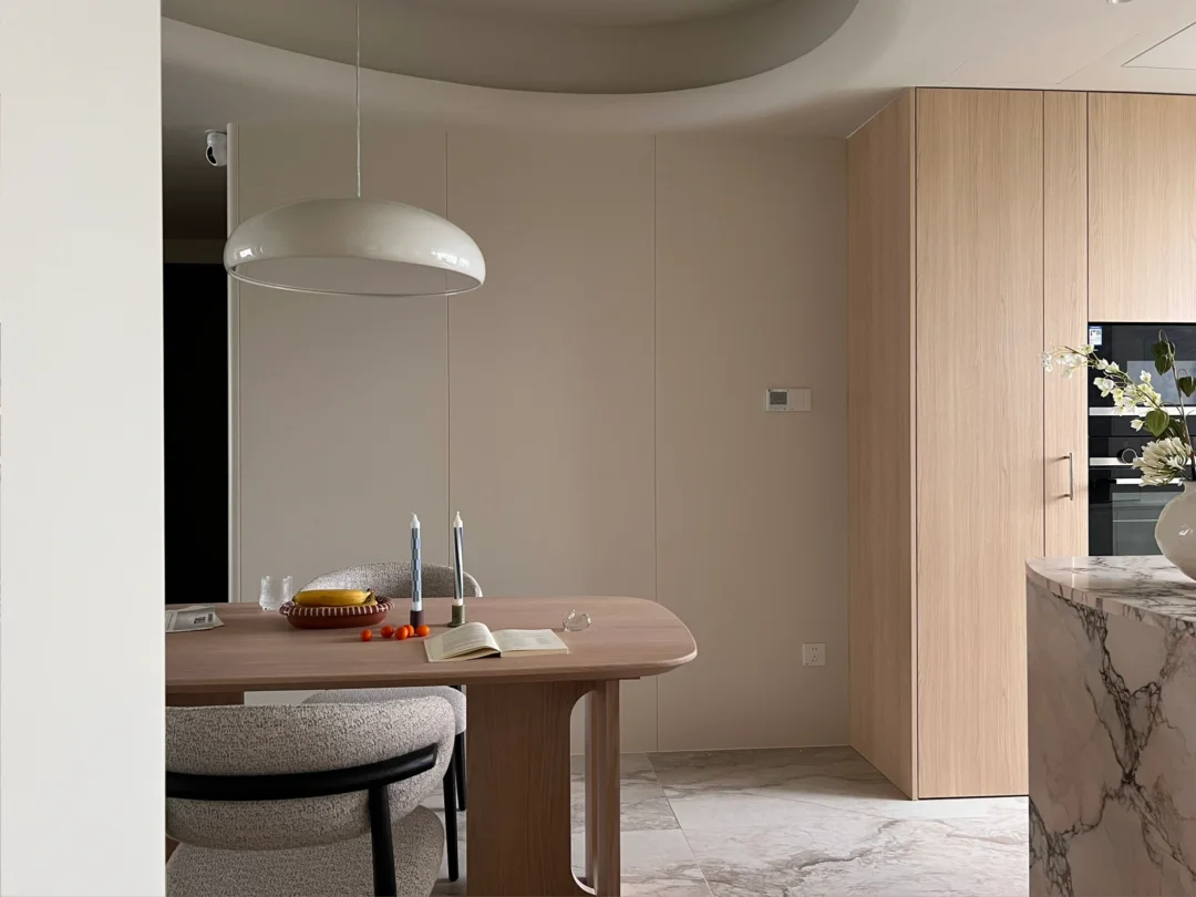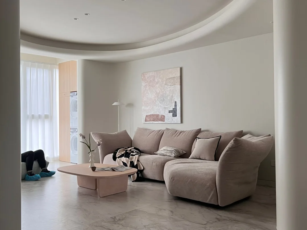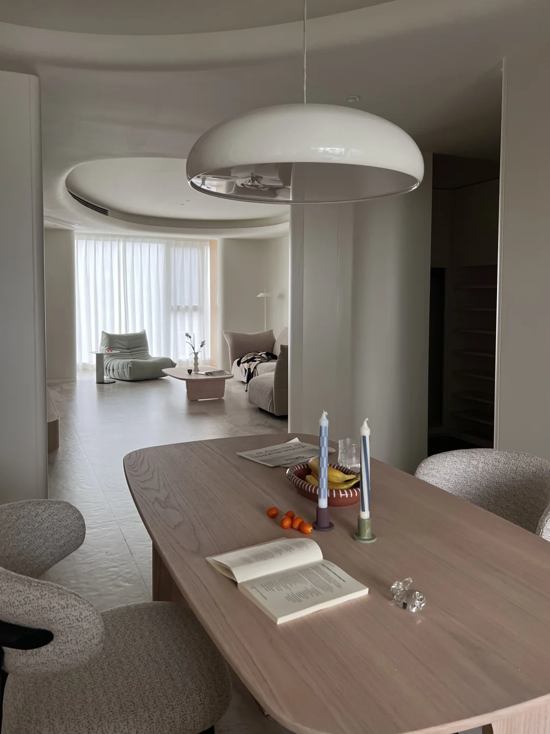 枫丹白露拍摄现场🔚 阴天不开灯也很貌美的家~ 每次来都要感叹色调真的太舒适啦! 160做出200的空间感~开放式空间➕环形动线空间通透又显大 -