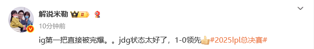 [-]ig第一把直接被完爆。。jdg状态太好了,1-0领先