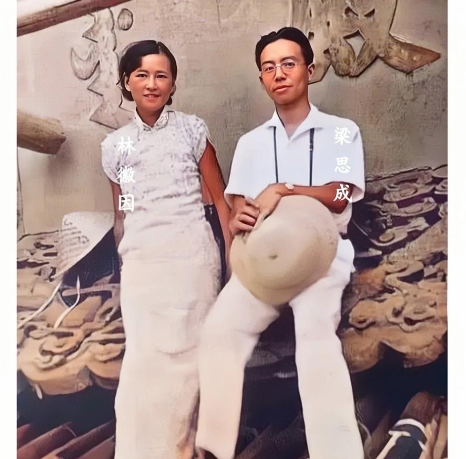这才是1935林徽因与丈夫梁思成在屋顶的真实样貌,这不是演戏,也不是电视剧里的演