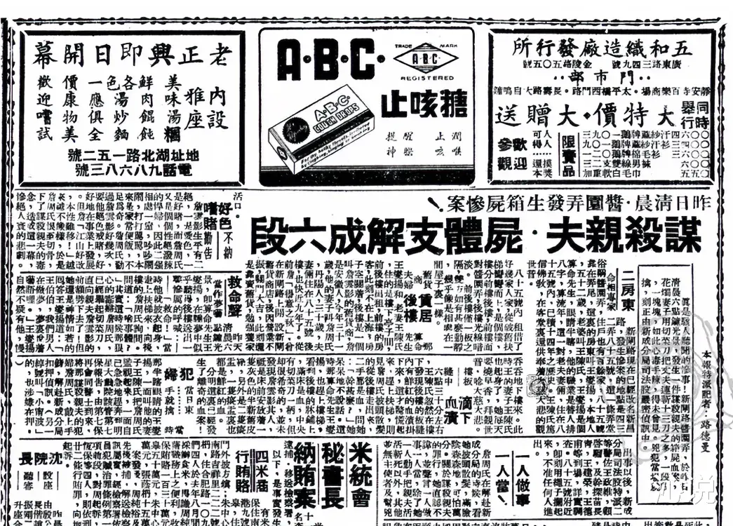 詹周氏一案,迅速地占据各路小报的头版头条,有的标题为《酱园弄血案》,有的称为《箱尸案》,最普遍的则是叫做《谋杀亲夫》……