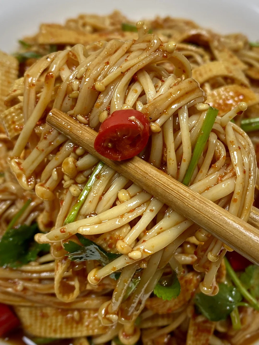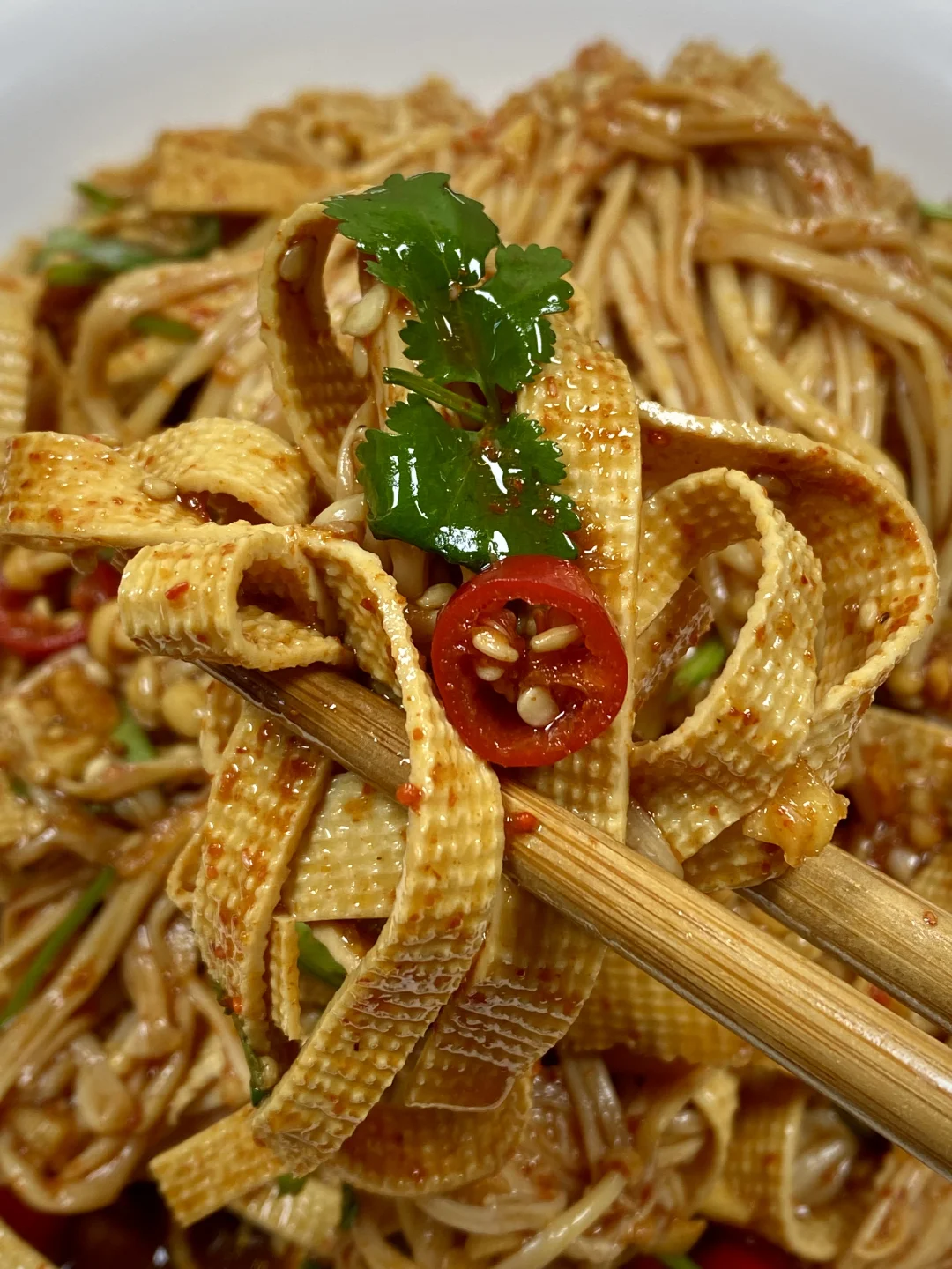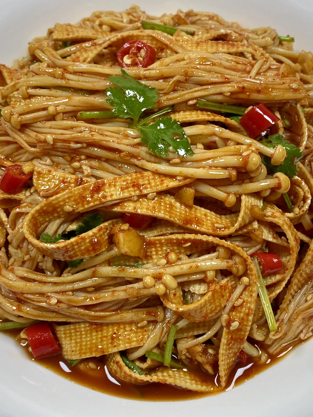 今天分享的是凉拌豆皮金针菇,巨好吃! 酸辣爽口,清爽开胃,金针菇和豆皮裹满了美味酱汁,每一口下去都嘎嘎好吃!低脂美味,越吃越香,一上桌就秒光!喜欢吃凉拌的姐妹快来试试吧! 食材:豆皮 金针菇 小米辣 蒜末 香菜 芝麻 做法简单,步骤看图集~