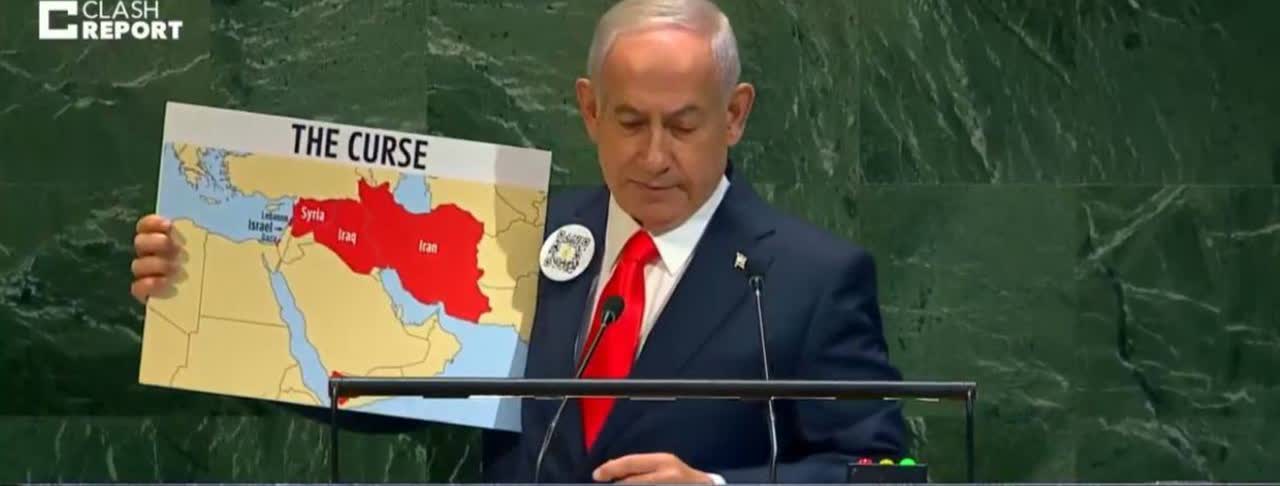 图一:上一次联合国大会时内塔尼亚胡拿出的以色列地图,当时以色列周边的国家名称,领土范围基本上还表示清楚,以色列的土地范围就是那么小一块。 图二:本次联合国大会时内塔尼亚胡拿出的地图,可以看出,他把以色列的地图扩大了好多倍,他说这是他梦想中的大以色列。 大以色列包含了叙利亚,约旦,塞浦路斯,黎巴嫩,伊拉克,埃及和沙特的部分地区等等,也就是说,攻略加沙只是以色列的第一步,一旦他们证实了加沙模式可行,并且完全占领加沙之后,其他国家一个都跑不掉,都要面临加沙的下场。 内塔尼亚胡也是狂妄,居然敢把这种战略明晃晃地拿到联合国大会上讲,分明就是在嘲讽中东国家,嘲讽阿拉伯世界,不能拿他怎么样。 以色列仗着有美国撑腰,实在是狂妄到了骨子里! 但他们应该回顾一下他们的历史,不懂得和邻居和平相处的人,最后的下场往往不会好!
